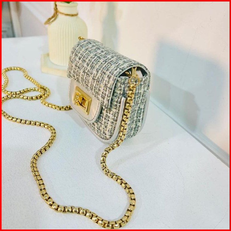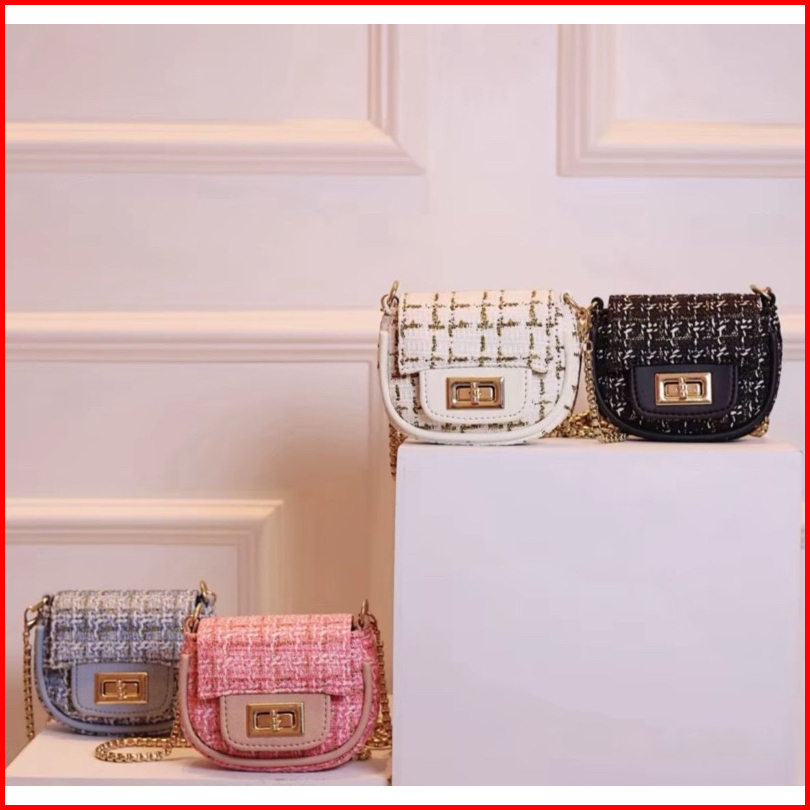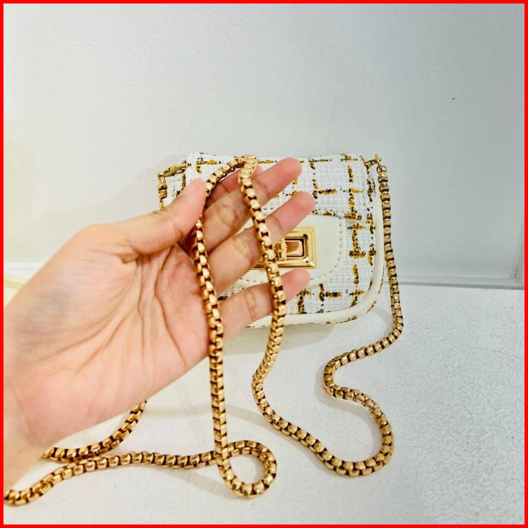 Larizya - Tas Selempang Wanita Anak Livia Tas Selempang Wanita Dompet Koin Mini Premium Bahan Kanvas Rajut Tali Rantai A
