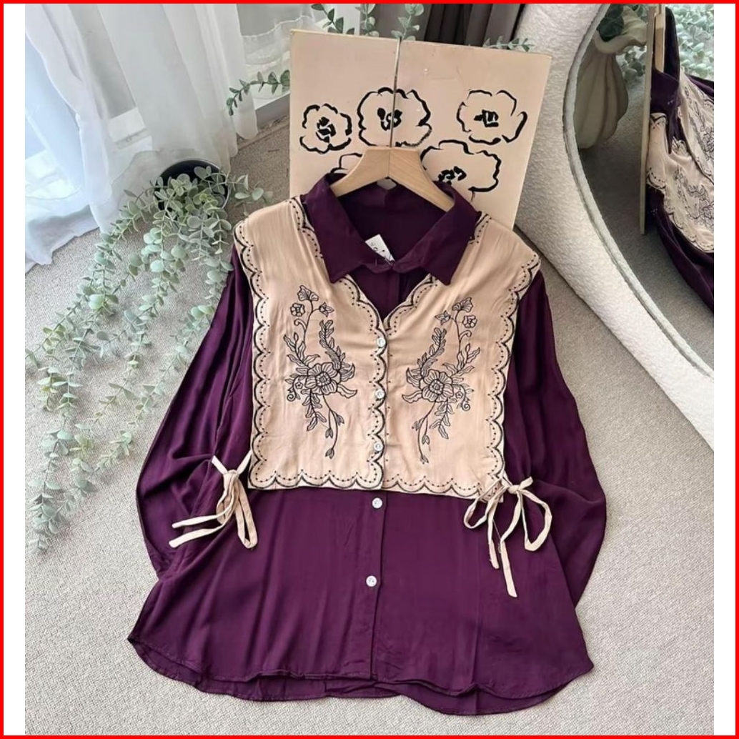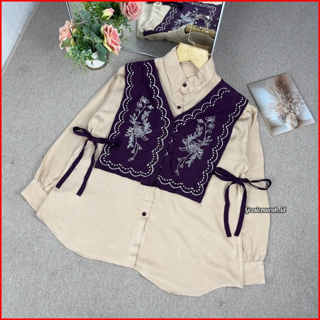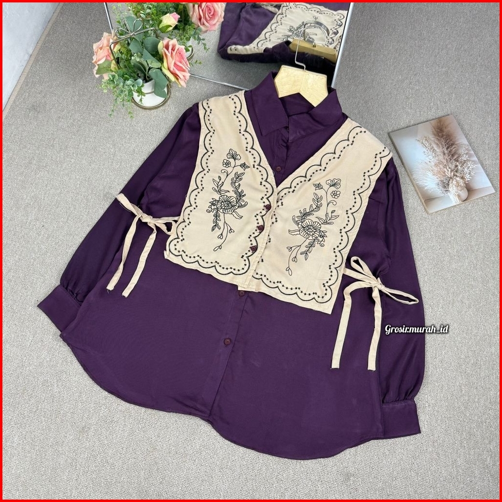 Vineta Blouse Vest Bordir Rayon Twill Warna Beragam