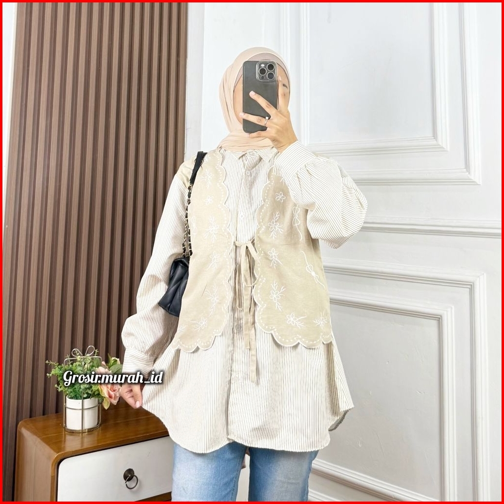 Raisa Blouse Katun Salur Kombinasi Linen