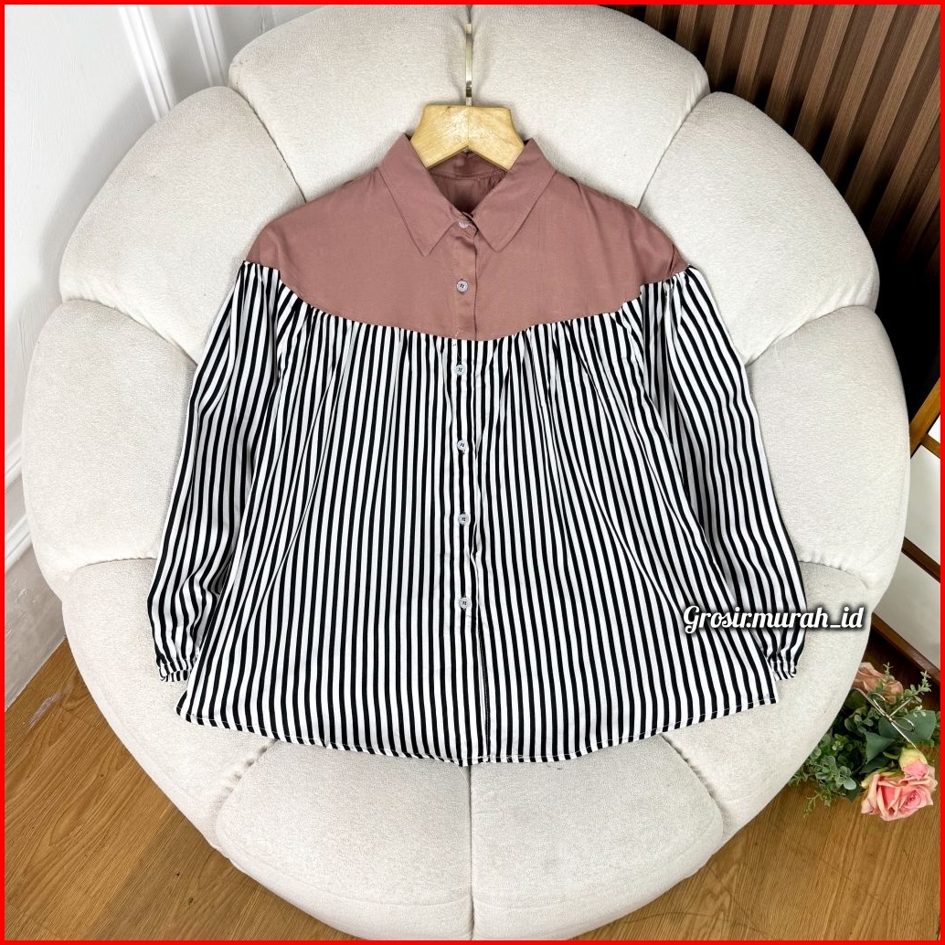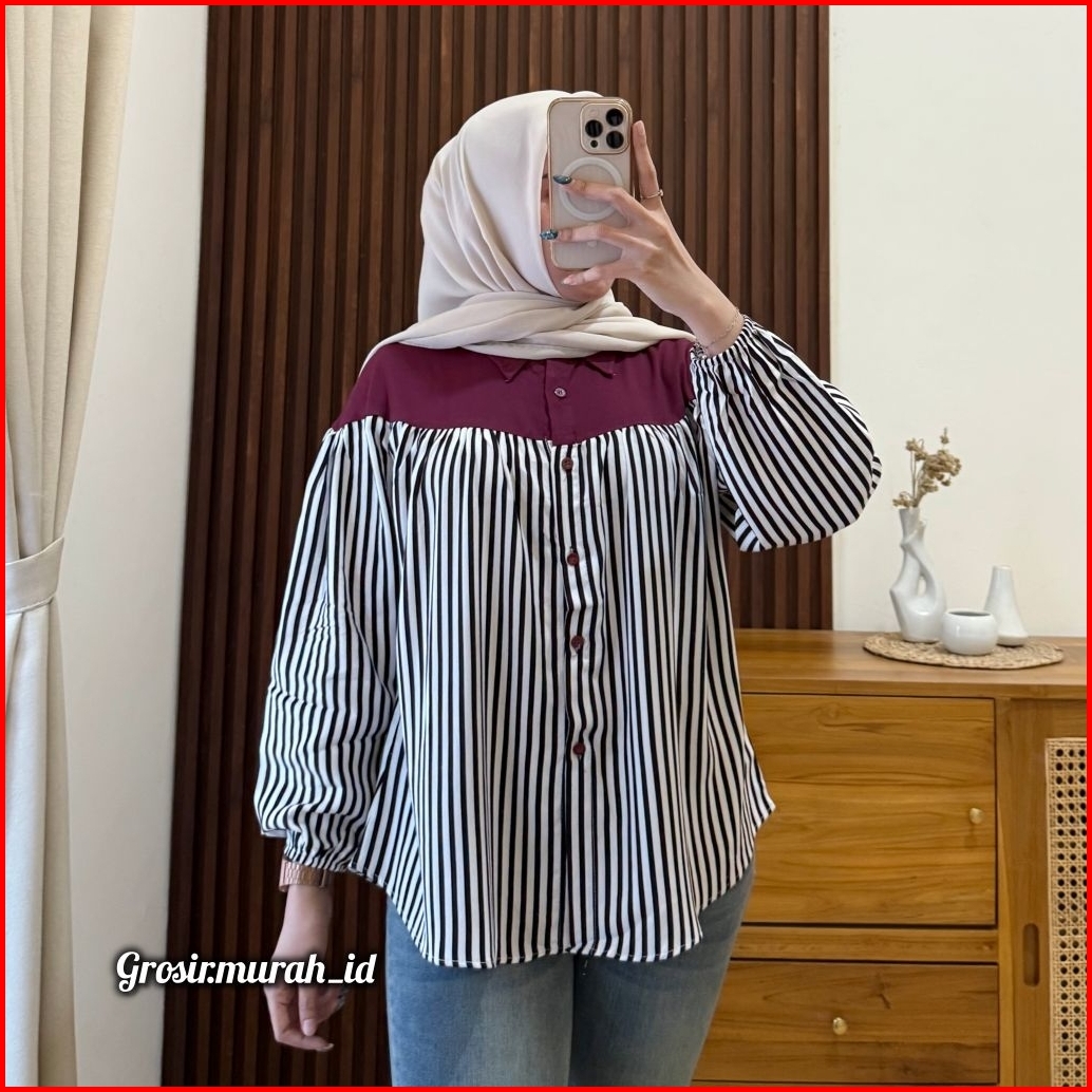 Sellina Blouse Salur Kombinasi Rayon Twill