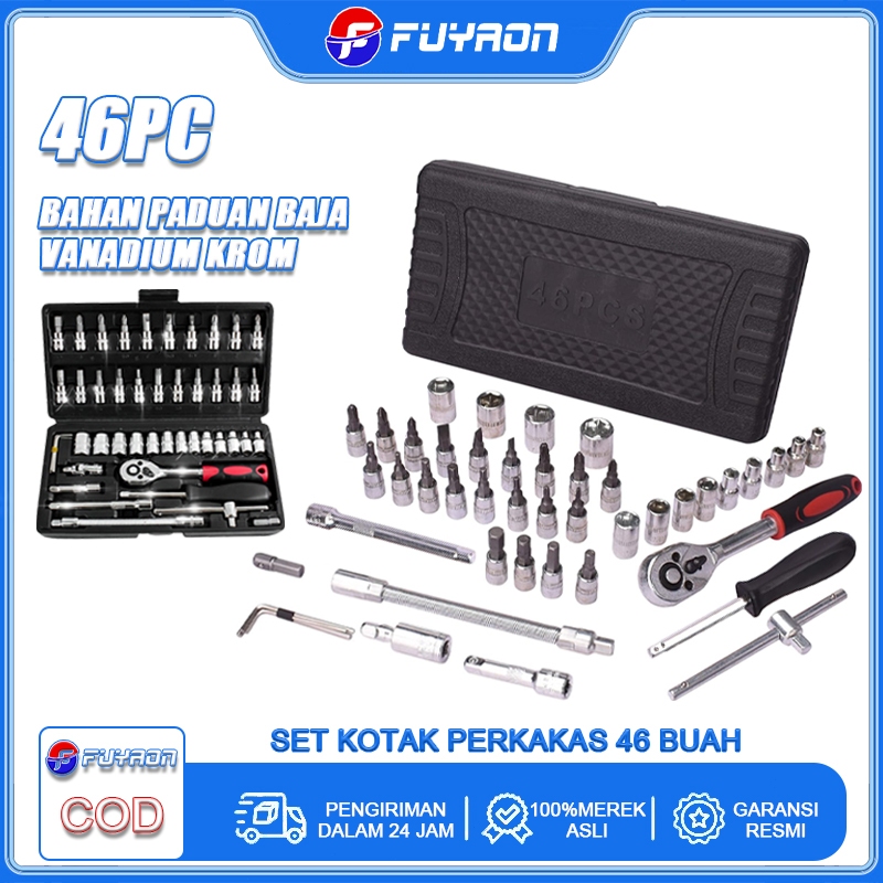 FUYAON Socket Wrench Set 46 Buah Set Lengkap (1/4 ") Ratchet Wrench Set Shock Absorber Wrench Set Pas Cincin Sepeda Moto