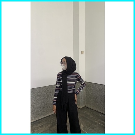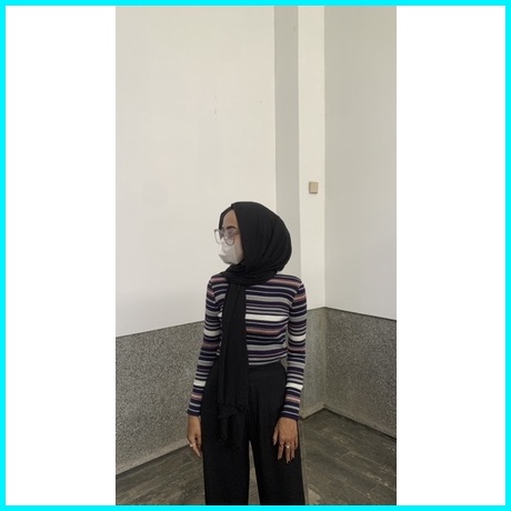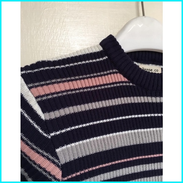 Knit Inner Garis-garis Navypink Korean Minimalis