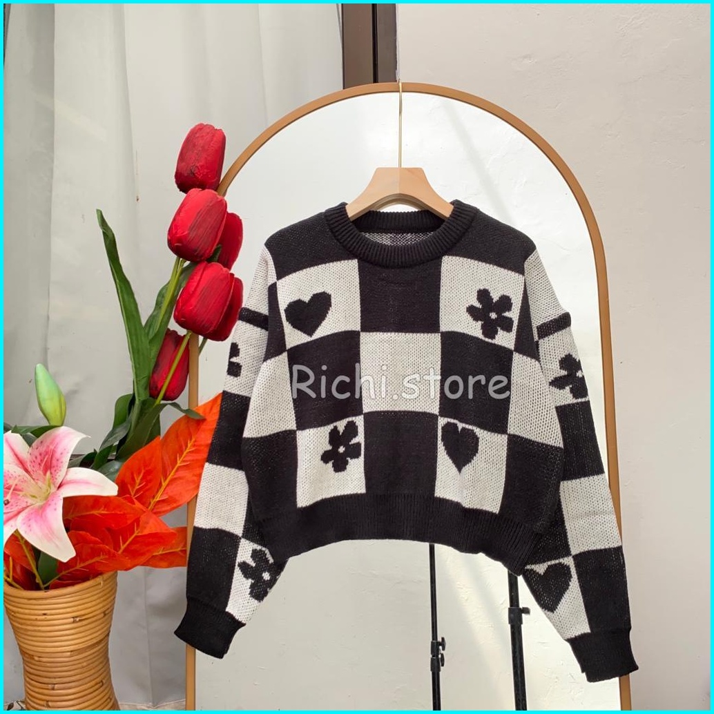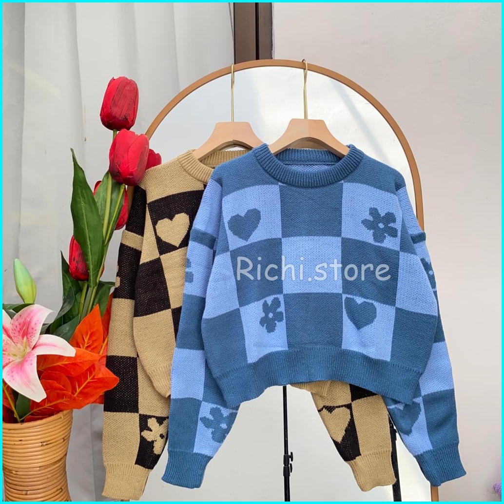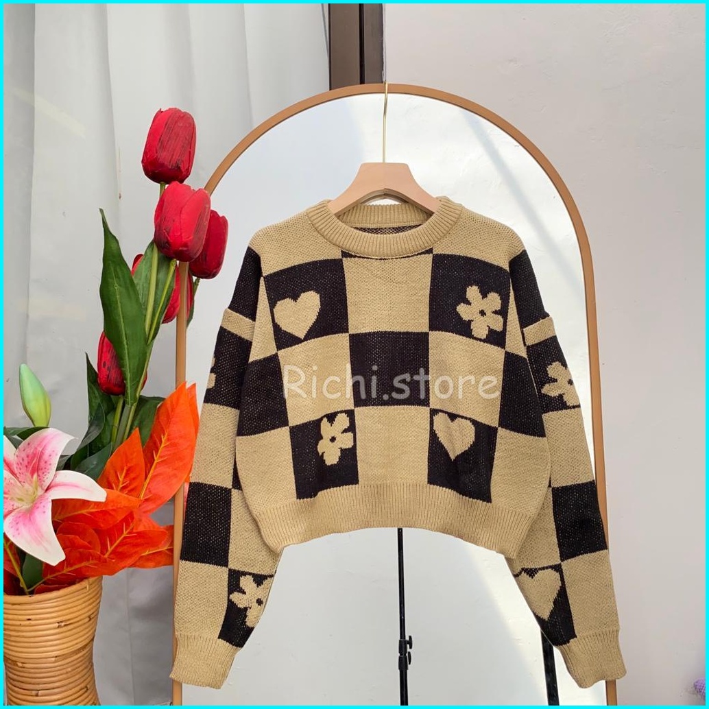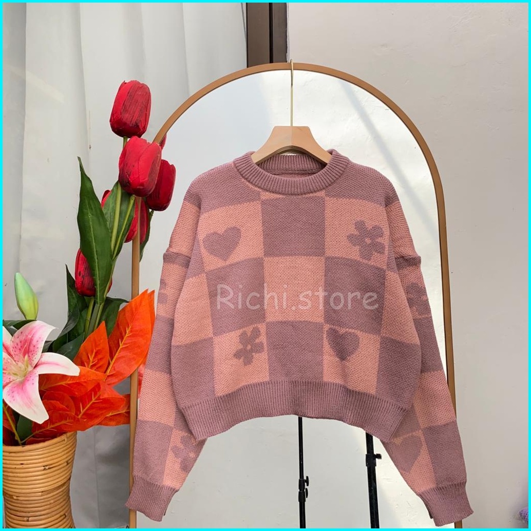 Sweater Hindy Crop Terbaru Rajut Bunga-bunga