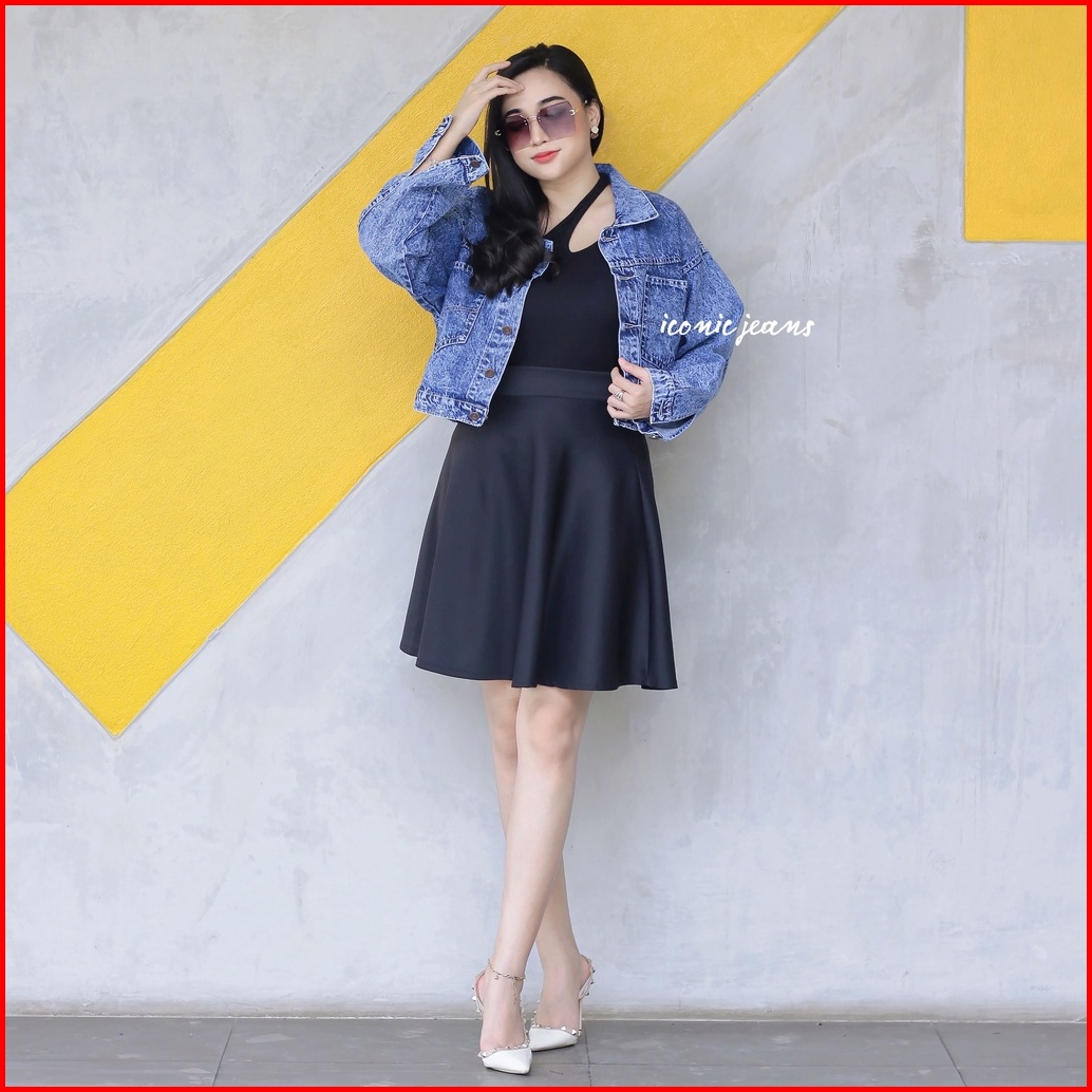 Elona Jeans Jacket Crop Belah Belakang Vintage Seksi