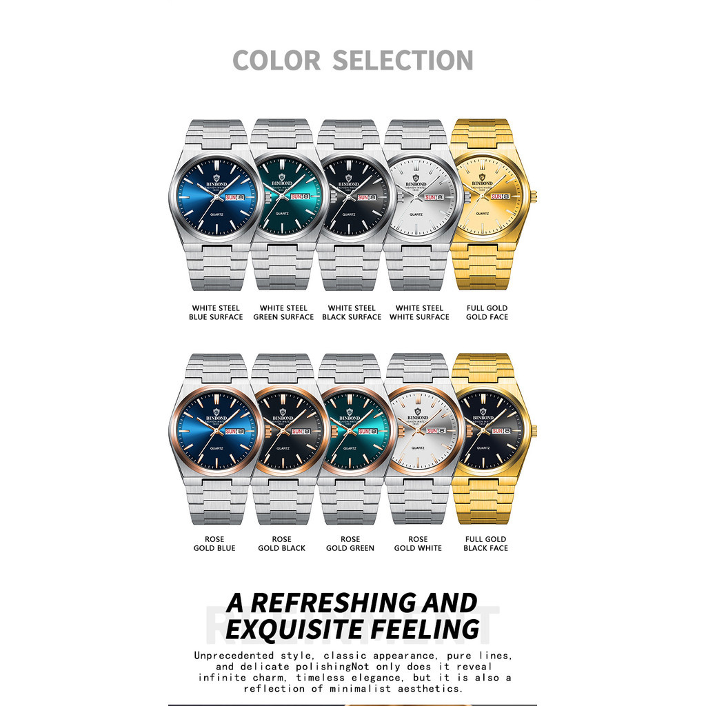 Binbond Jam Tangan Bisnis Pria Baru Modis Jam Tangan Kuarsa Baja Tahan Karat Kasual Jam Tangan Pria Kalender Bercahaya T