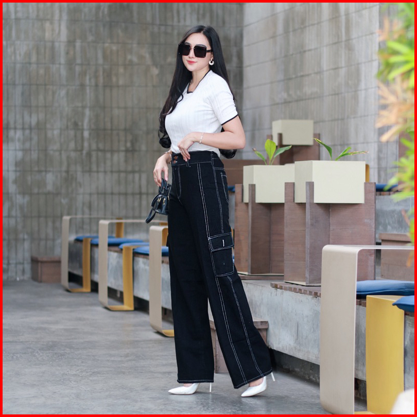 Evo Cargo Jeans Kulot Dua Kancing Pinggang Karet