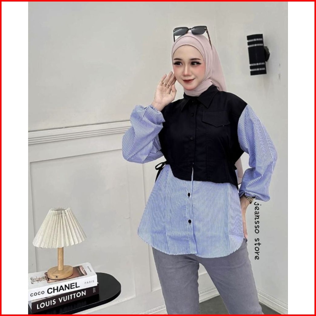 Kemeja Zelin Jeans Kombinasi Rayon Twiell Model Bigsize