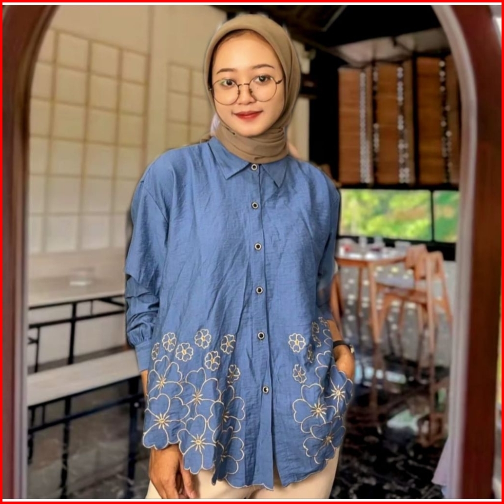 Kemeja Deanda Motif Bordir Kemeja Pololinen Kekinian Kemeja Blouse Korean