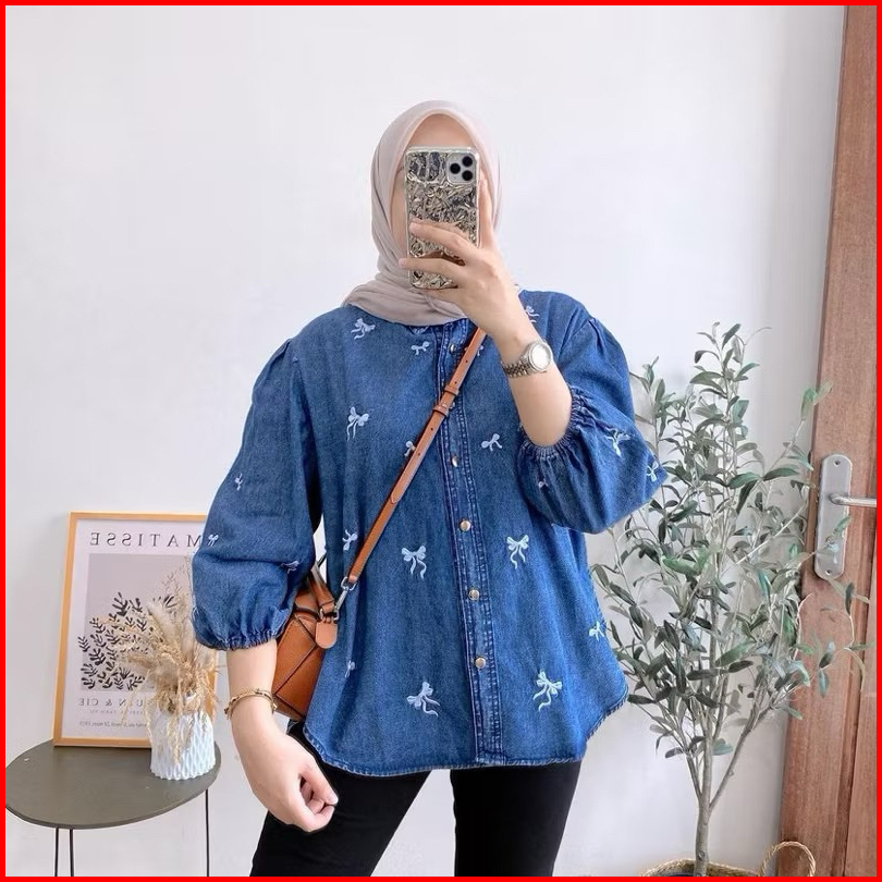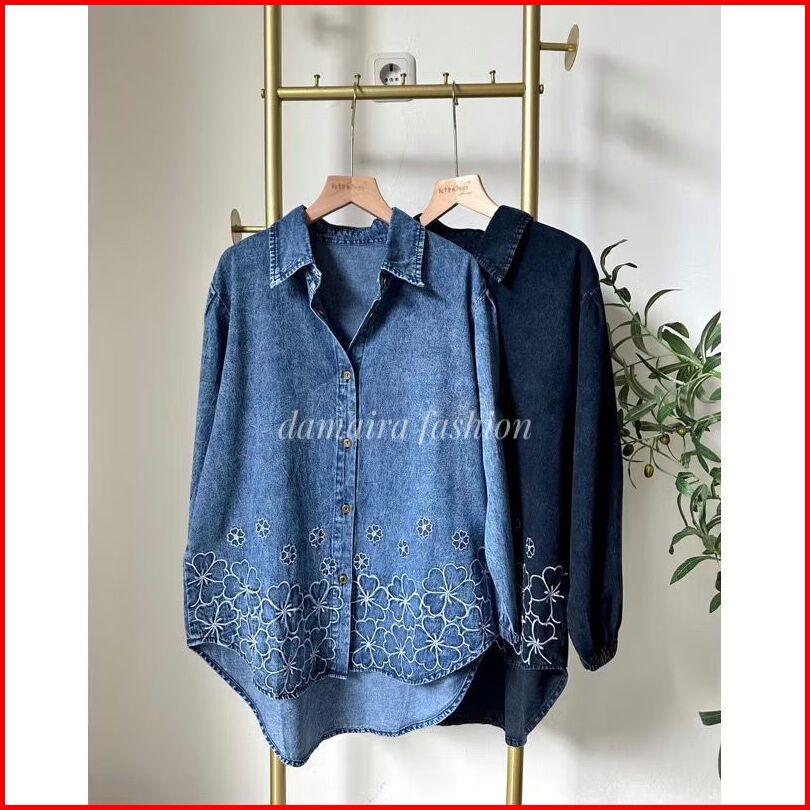 Kemeja Oversize Jeans Jumbo Atasan Wanita Ld 120 Bahan Jeans Wash Snow