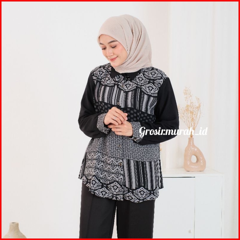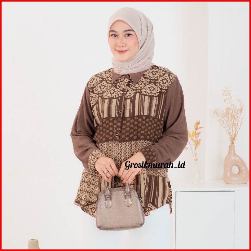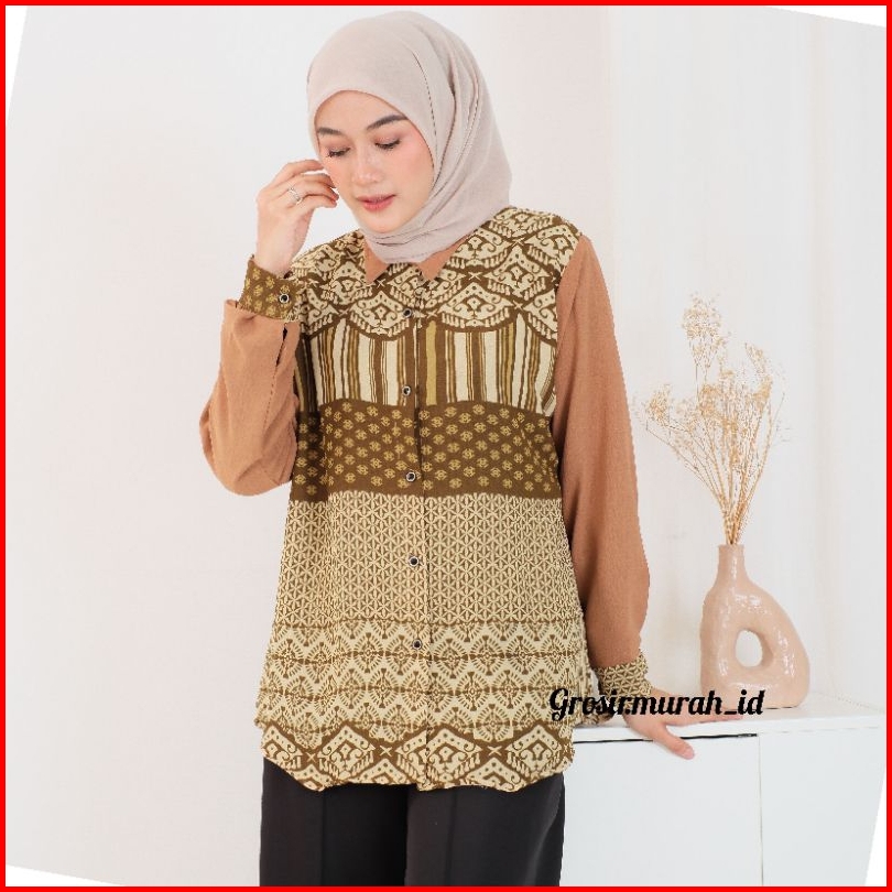 Zena Blouse Motif Crinkle Premium Berkerah Kancing Depan