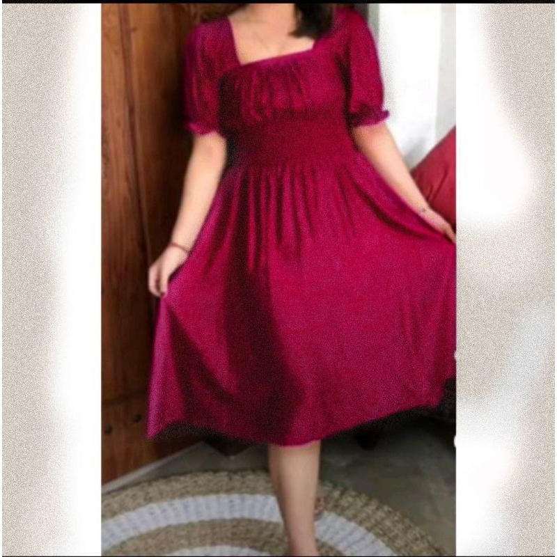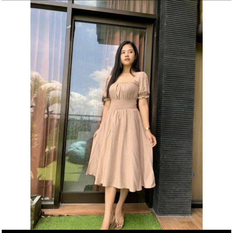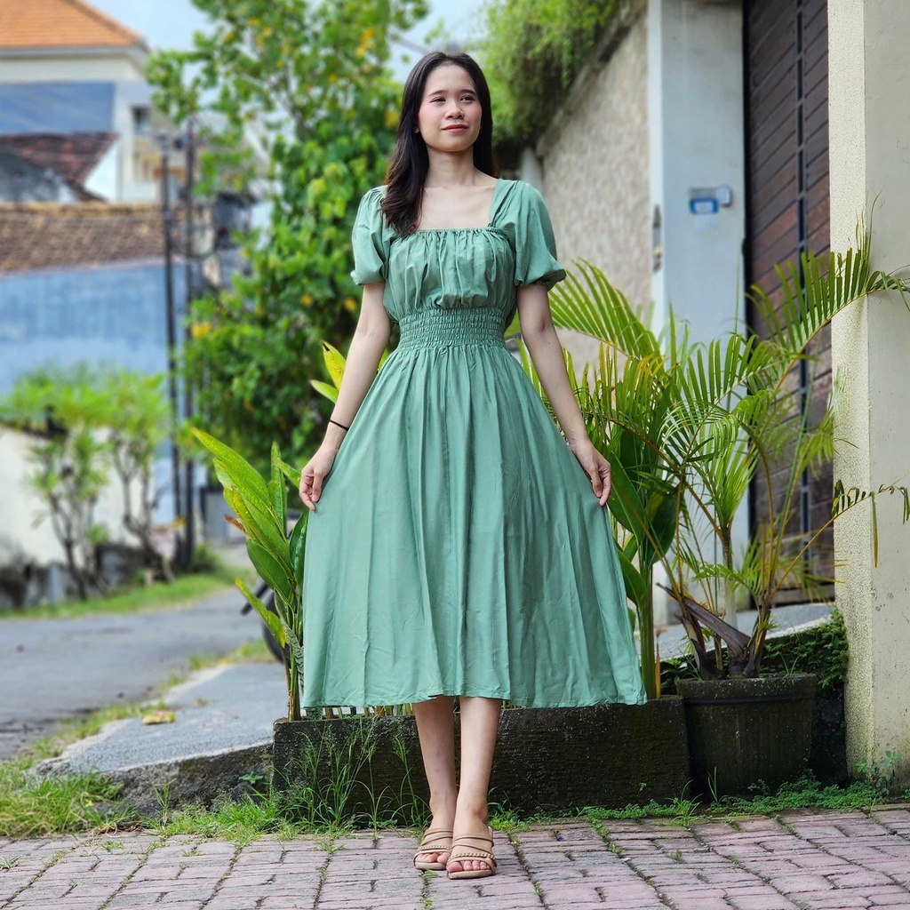 DRESS BALI WANITA NAURA POLOS PINGGANG KARET LD110 BAHAN POLY RAYON PREMIUM DRESS PANTAI TERBARU