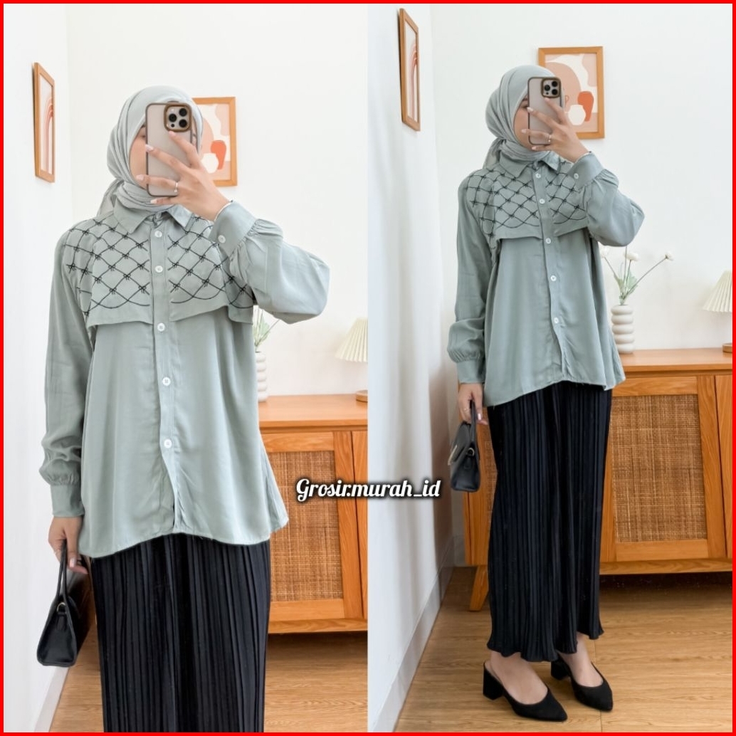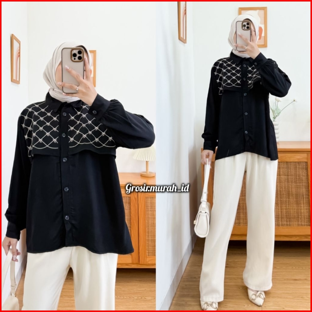 Meisha Blouse Bordir Rayon Twill Berkerah Multicolor