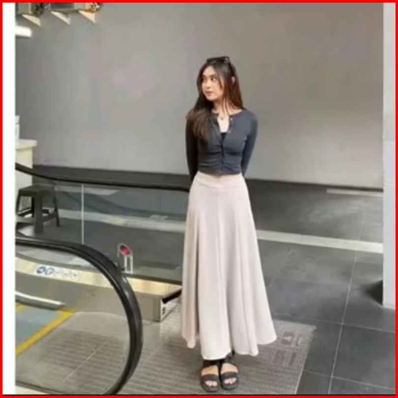 Audy Skirt - Loose Maxi Skirt Korean Style - Rok Panjang Wanita Bahan Scuba Premium Anti Kusut