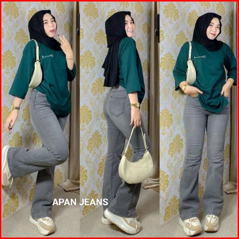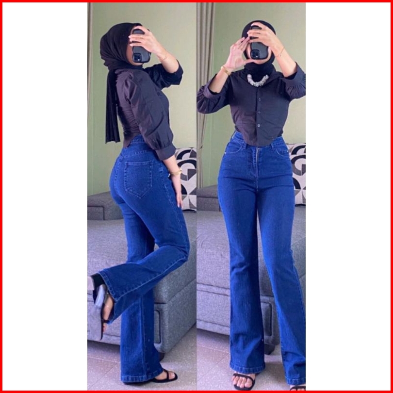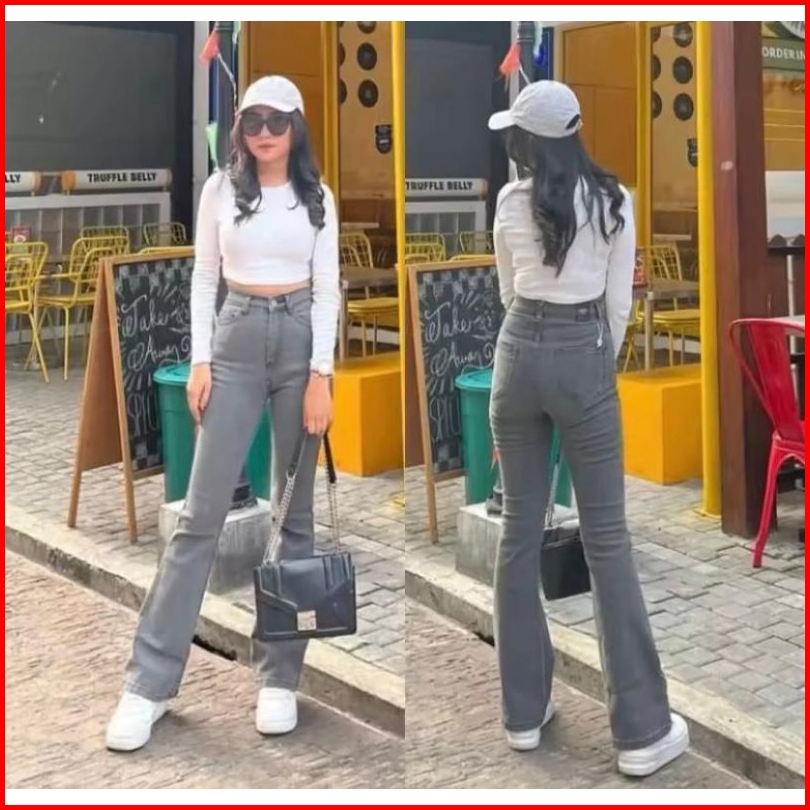 Highawist Cutbray Loose Jumbo Jeans Wanita Stretch