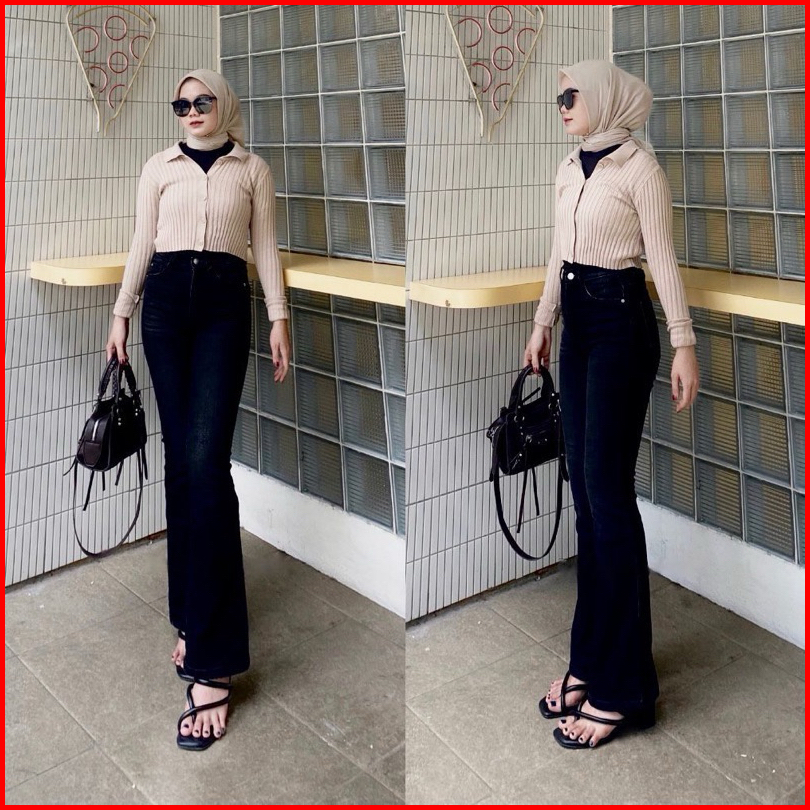 Celana Jeans Highwaist Cutbray Wanita Streath Premium