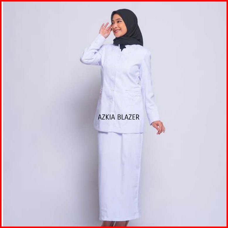 Seragam Kerja Wanita Blazer Wanita Terbaru Polyester Premium Import Stretch Melar Putih Azkia