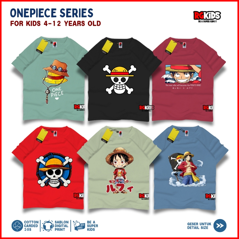 Rgkids Kaos Anak Laki-laki Onepiece Luffy Umur 4-12 Tahun Sablon Print Digital