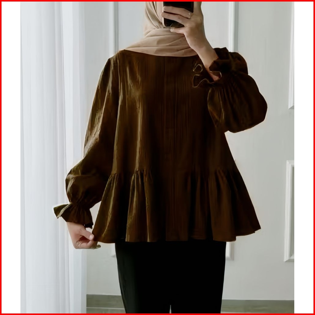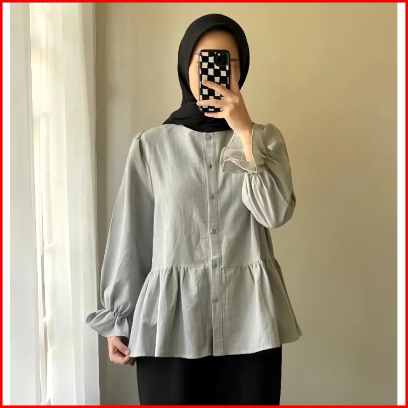 Lolly Ruffle Shirt - Kemeja Oversize Linen - Atasan Wanita