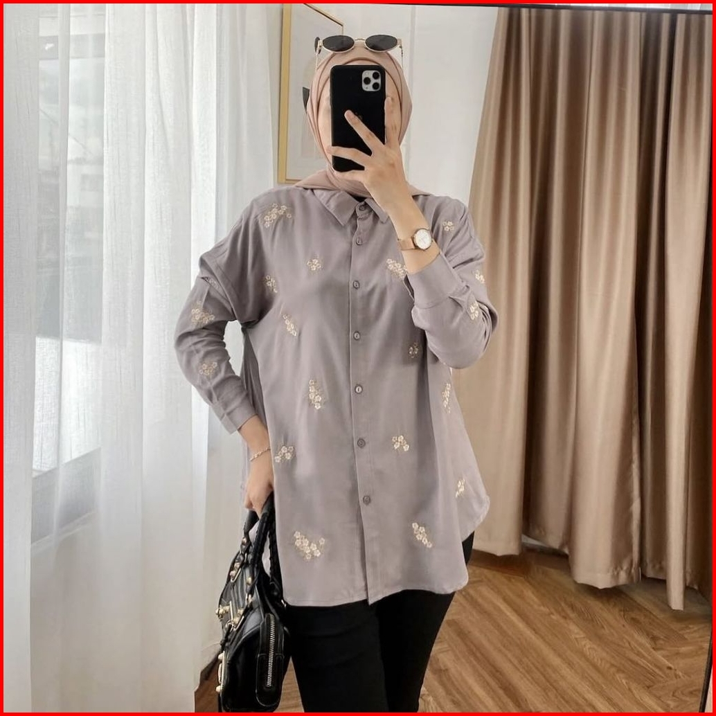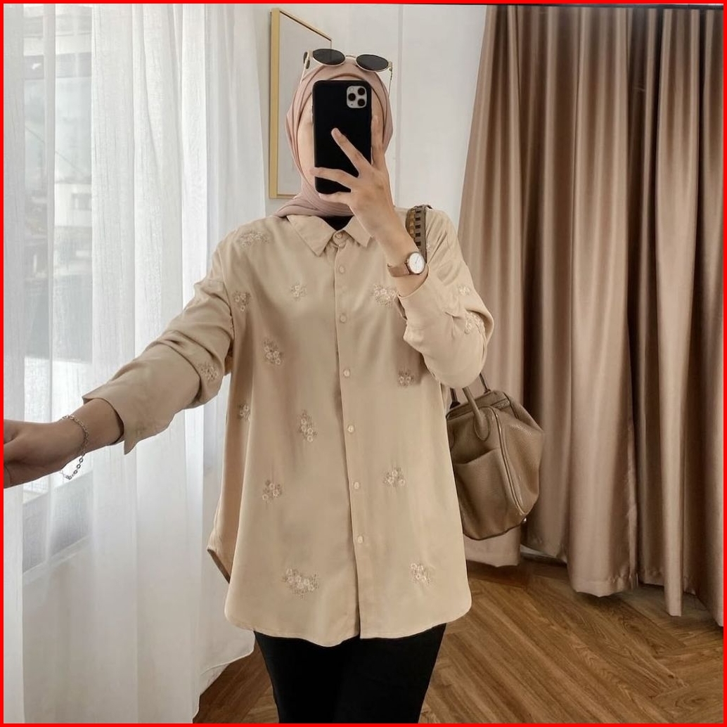 Jelita Blouse Bordir Rayon Twill Bunga-bunga