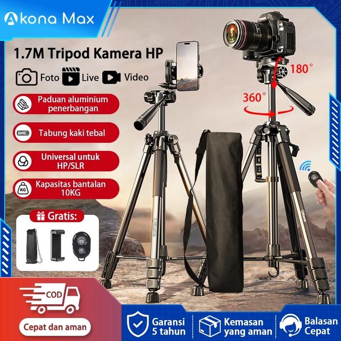 AKONA 1.7M TRIPOD KAMERA HANDPHONE BLUETOOTH REMOTE KONTEN KREATOR 360° ROTASI TRIPOD HP ANTI GOYANG 1/4 ADAPTOR (FREE T