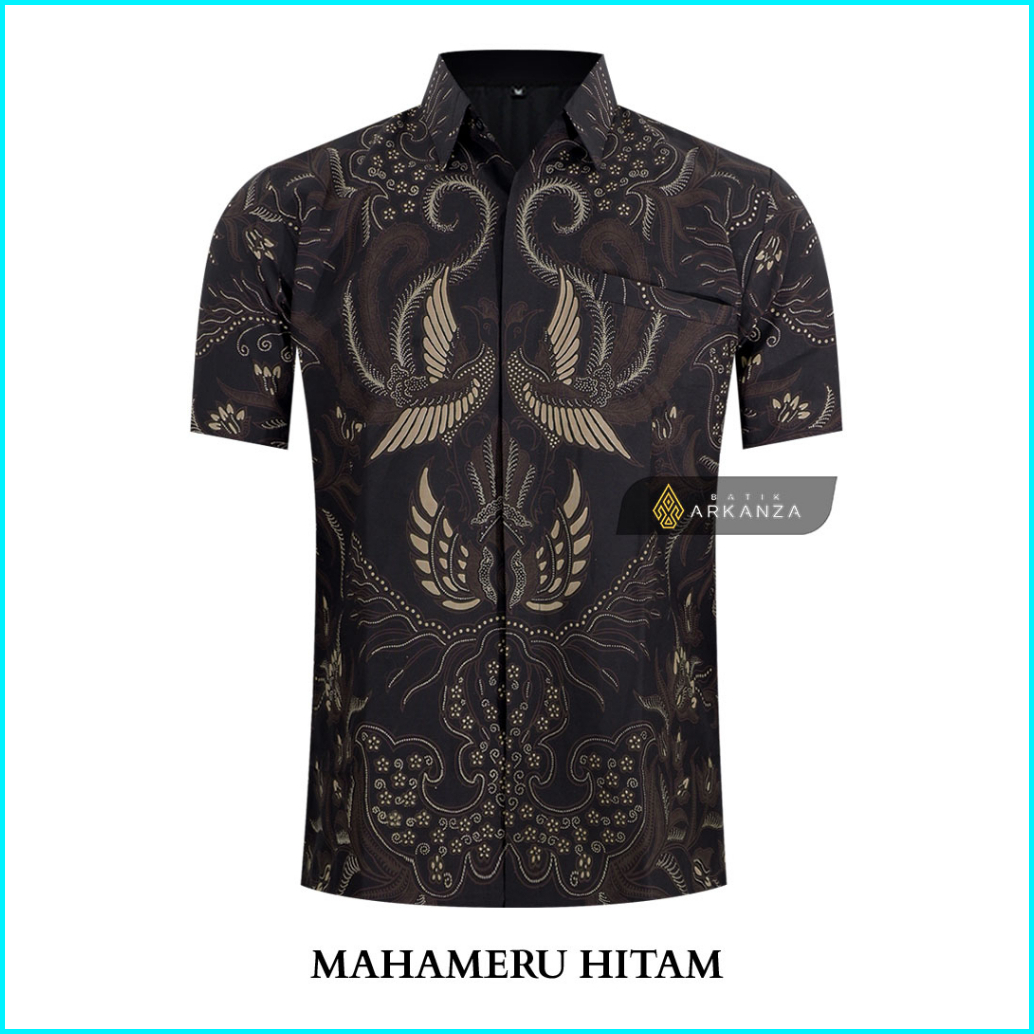Batik Arkanza Motif Mahameru Hitam Hem Atasan Kemeja Baju Batik Pria Cowok Laki Laki Slimfit Full Lapis Furing Lengan Pa
