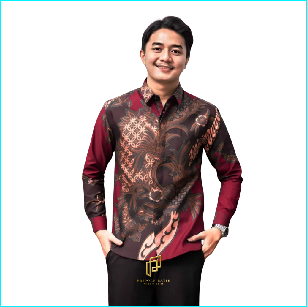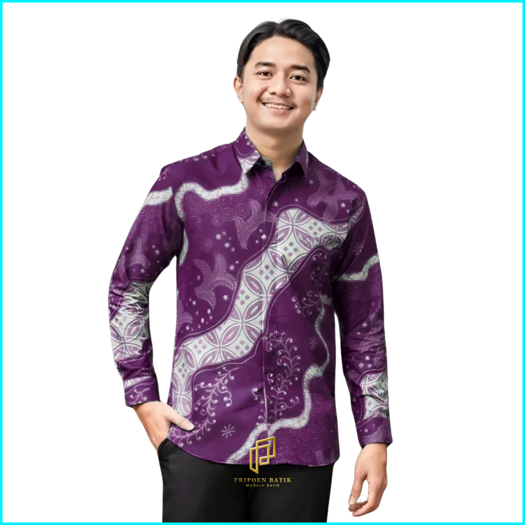 Pripoen Batik Batik Pria Lengan Panjang Soft Bluesky Formal Batik Kantor