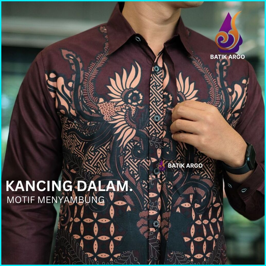 Batik Argo Prabuwira Burgundy Kemeja Batik Pria Slimfit Lapis Furing Katun Lengan Panjang Untuk Anak Muda Kondangan Lama