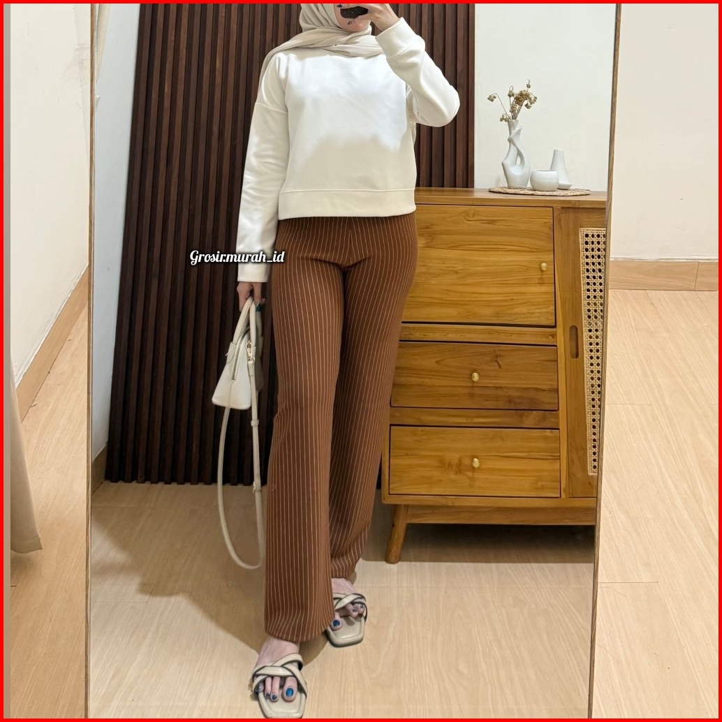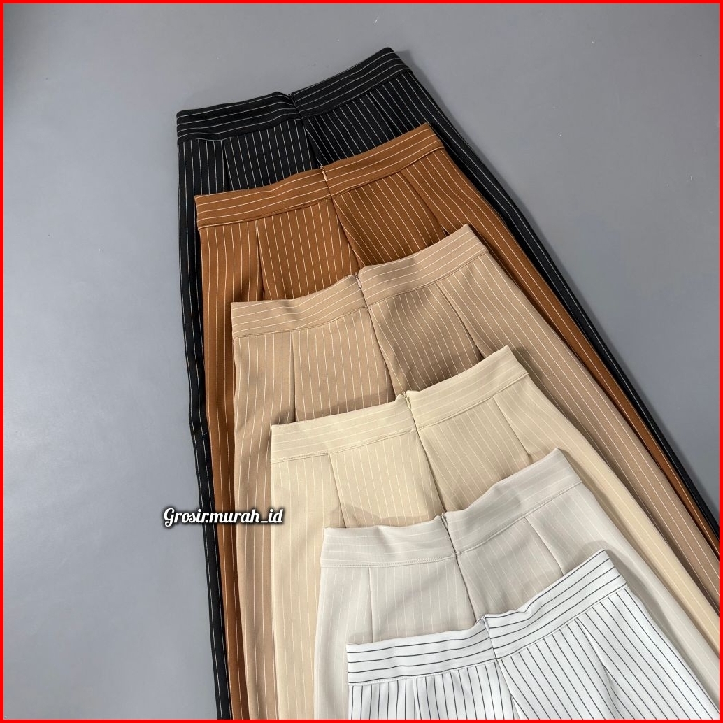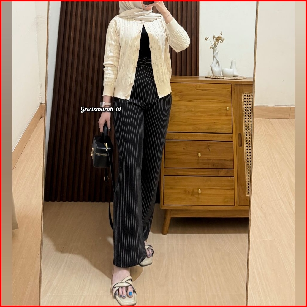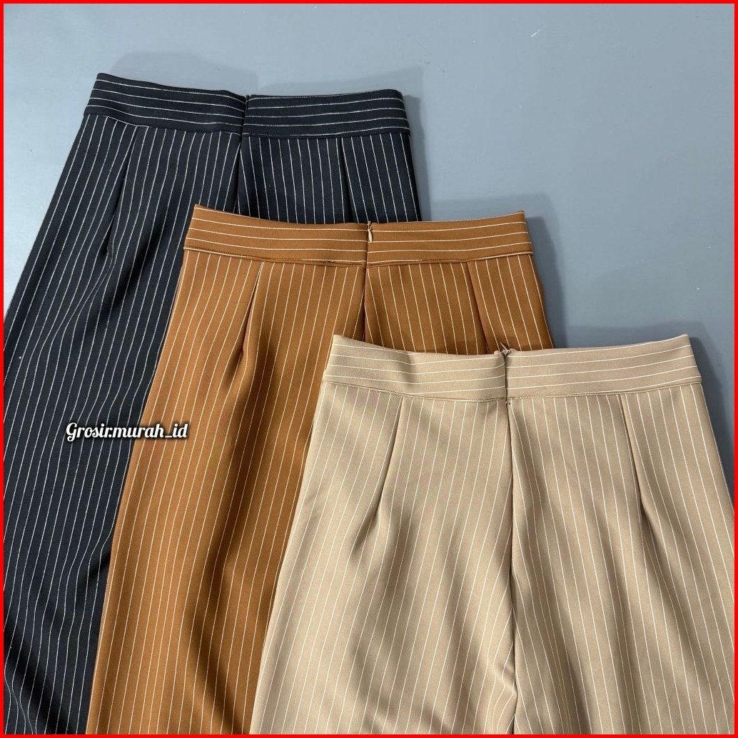 Stripe Pants Kulot Scuba Salur Celana Panjang Wanita