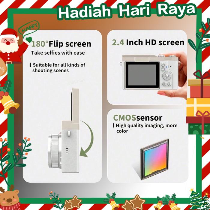 【HADIAH HARI NATAL】V380 SMART 4K DIGITAL KAMERA GAYA RETRO 64MP PORTABLE CCD RETRO KAMERA DIGITAL VINTAGE 2.4 INCH 8X ZO