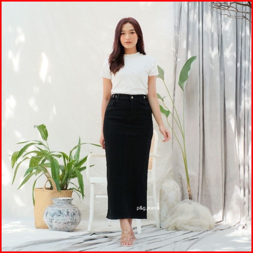 Theana Rok Jeans Polos Bahan Stretchy Pinggang Karet Bisa Diatur