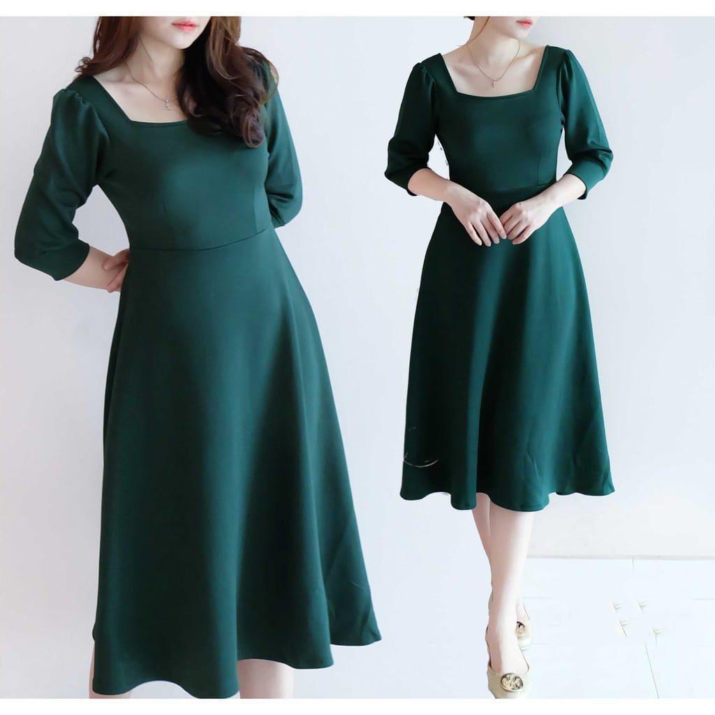 Aurora Dress - Dress Simple Korean Style / Bahan Scuba Premium Acara Natal Casual Formal Nyaman Simple :)