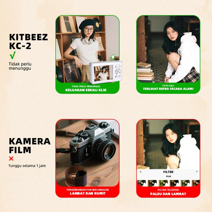 【LIVE EXCLUSIVE BUNDLE KITBEEZ KC-2】KAMERA CCD 56MP KAMERA DIGITAL RETRO MAMPU MEREKAM VIDEO FOKUS OTOMATIS LAYAR ULTRA