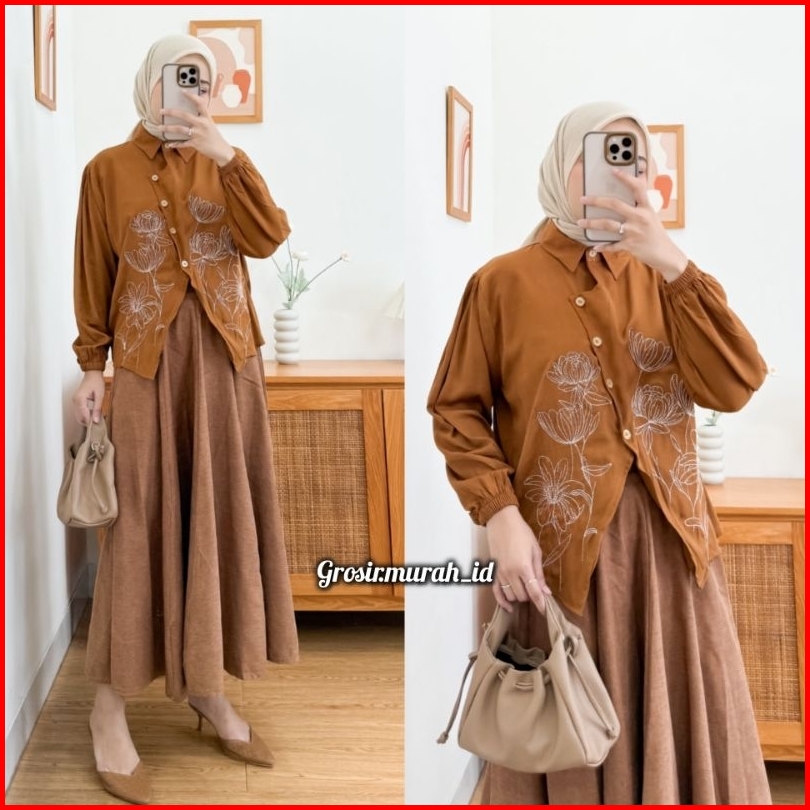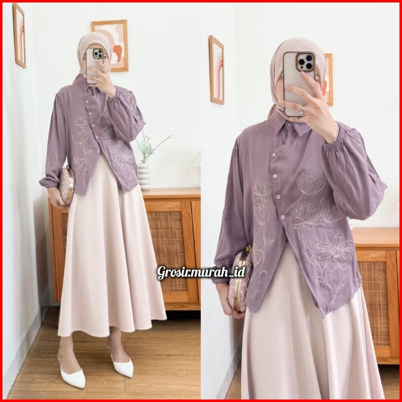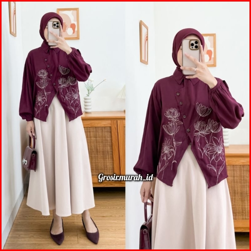 Renata Blouse Bordir Bunga Rayon Twill Berkerah