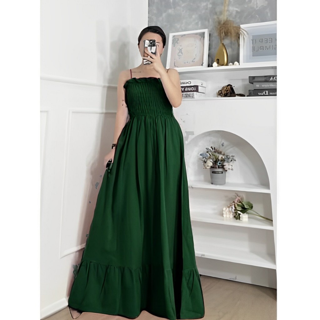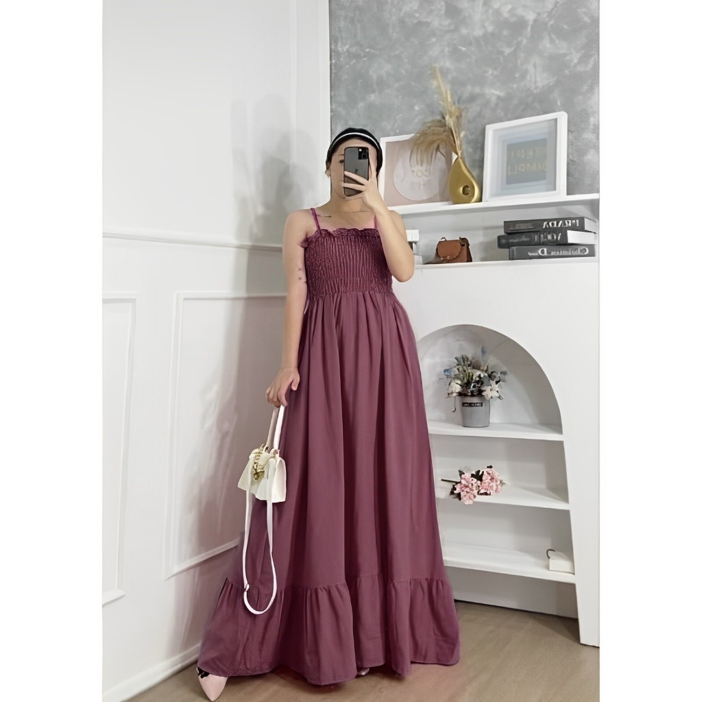 Korean Dress Polos/ Dress Kerut Tali/Dress e Panjang crincle Air Flow