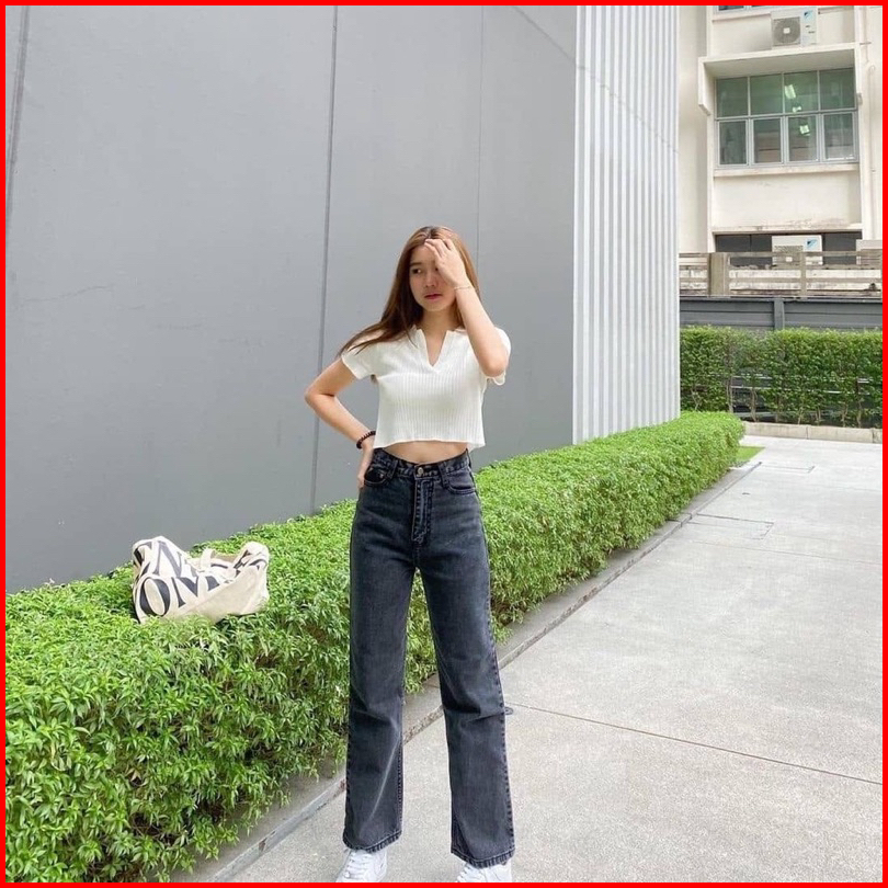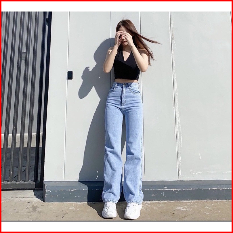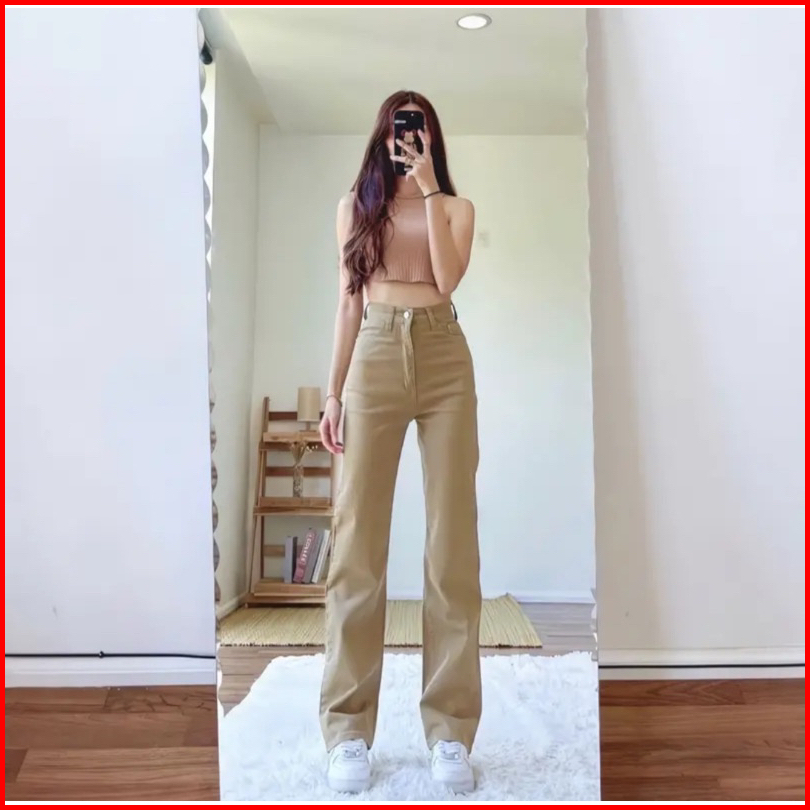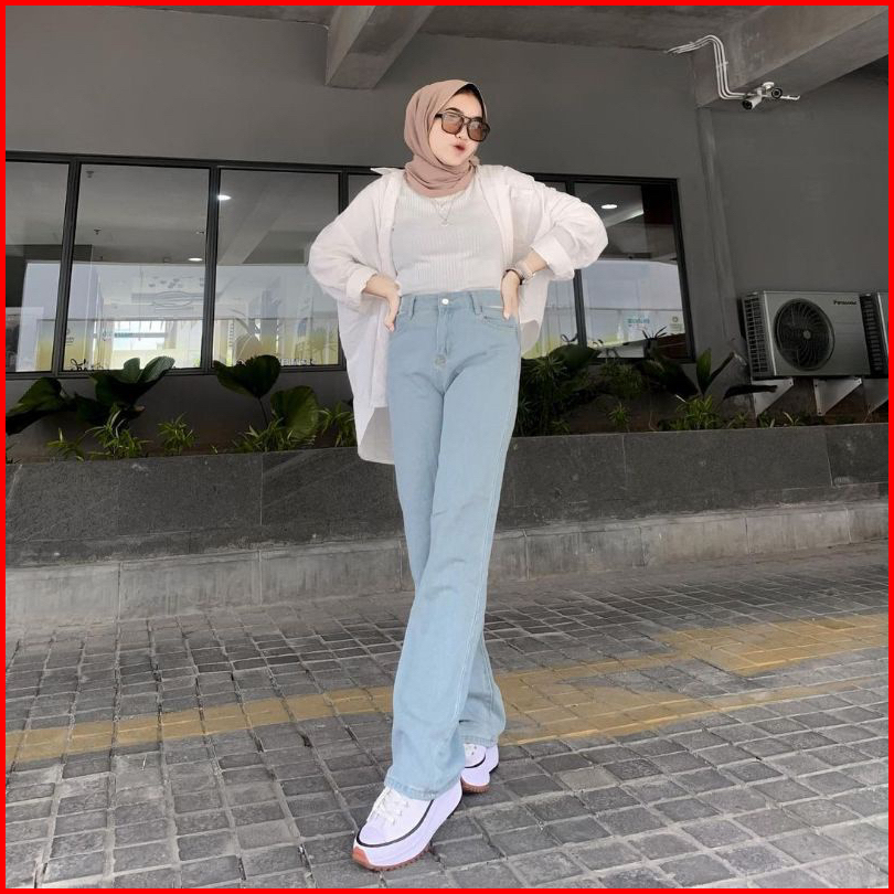 Highwaist Kulot Celana Jeans Loose Wanita Polos Panjang