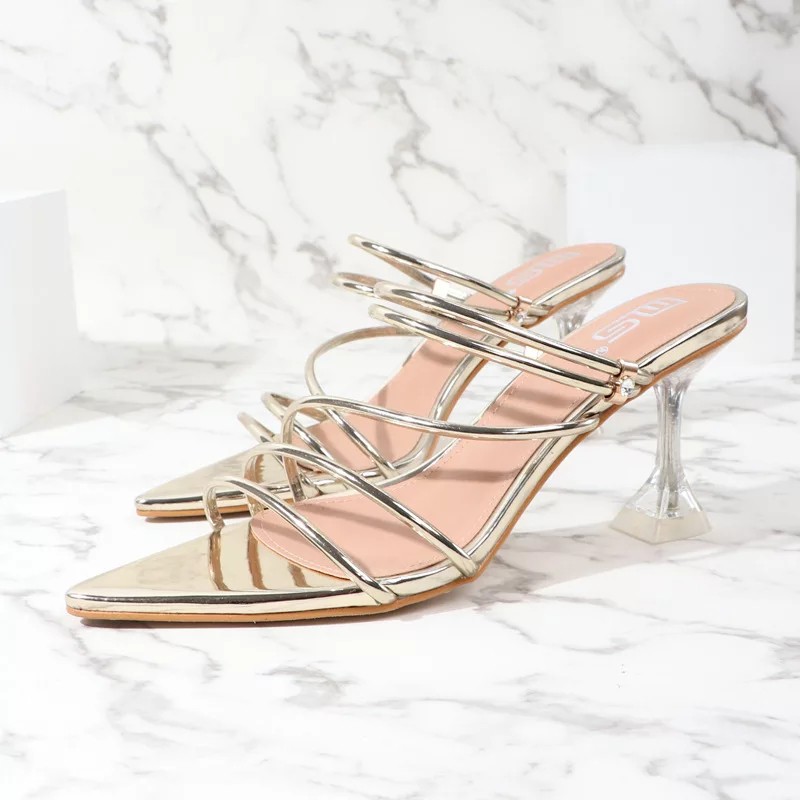 PROMO Sandal Wanita Hak Kaca Ujung Lancip Kulit Sintetis