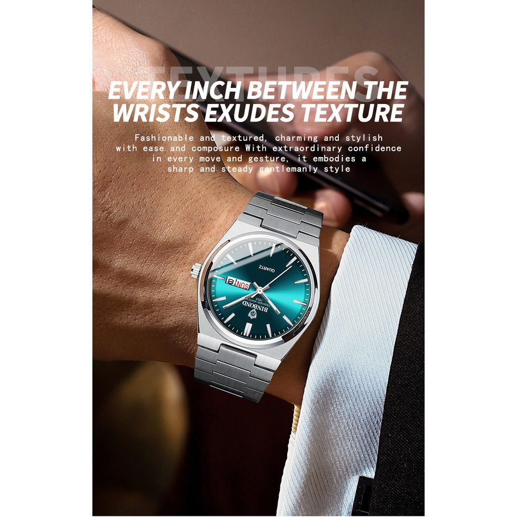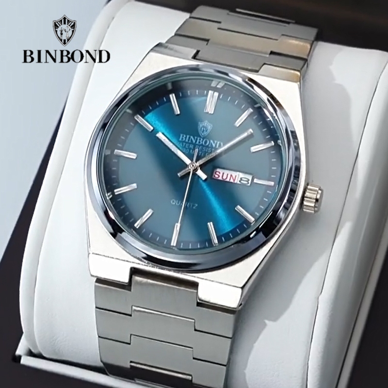 Binbond Jam Tangan Bisnis Pria Baru Modis Jam Tangan Kuarsa Baja Tahan Karat Kasual Jam Tangan Pria Kalender Bercahaya T