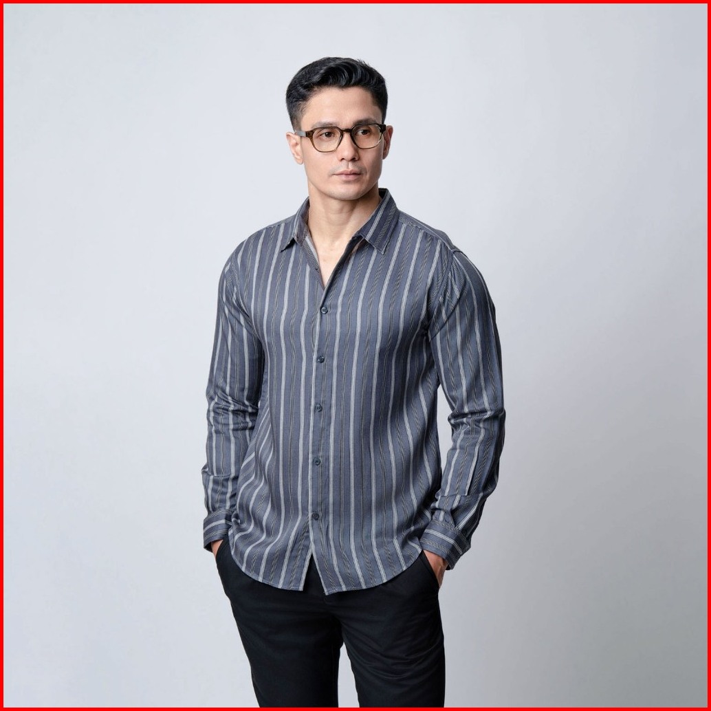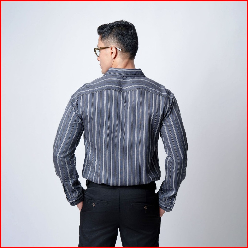 Vengoz Kemeja Pria Slim Fit - Virgo Stripe Shirt Grey Ls