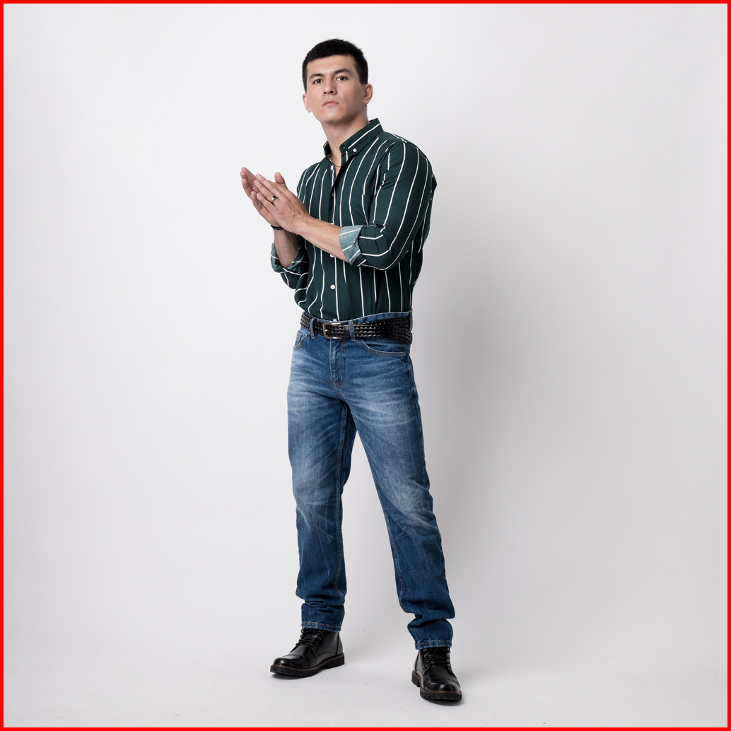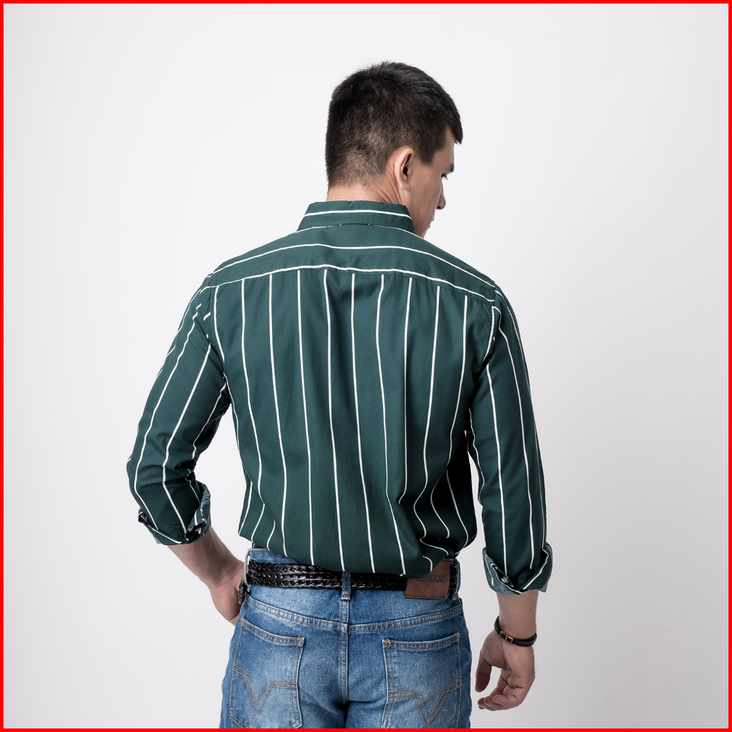 Vengoz Atasan Kemeja Pria Slim Fit - Vicente Stripe Dark Green Ls