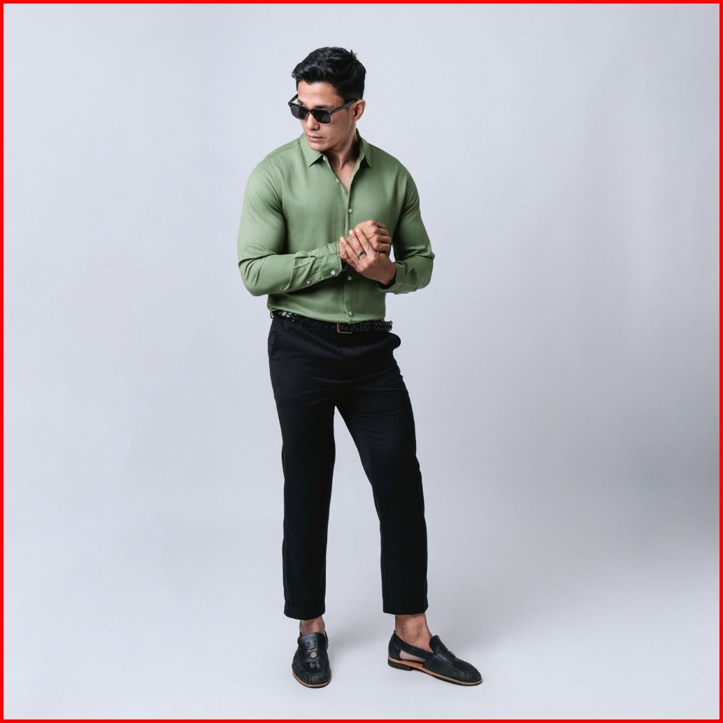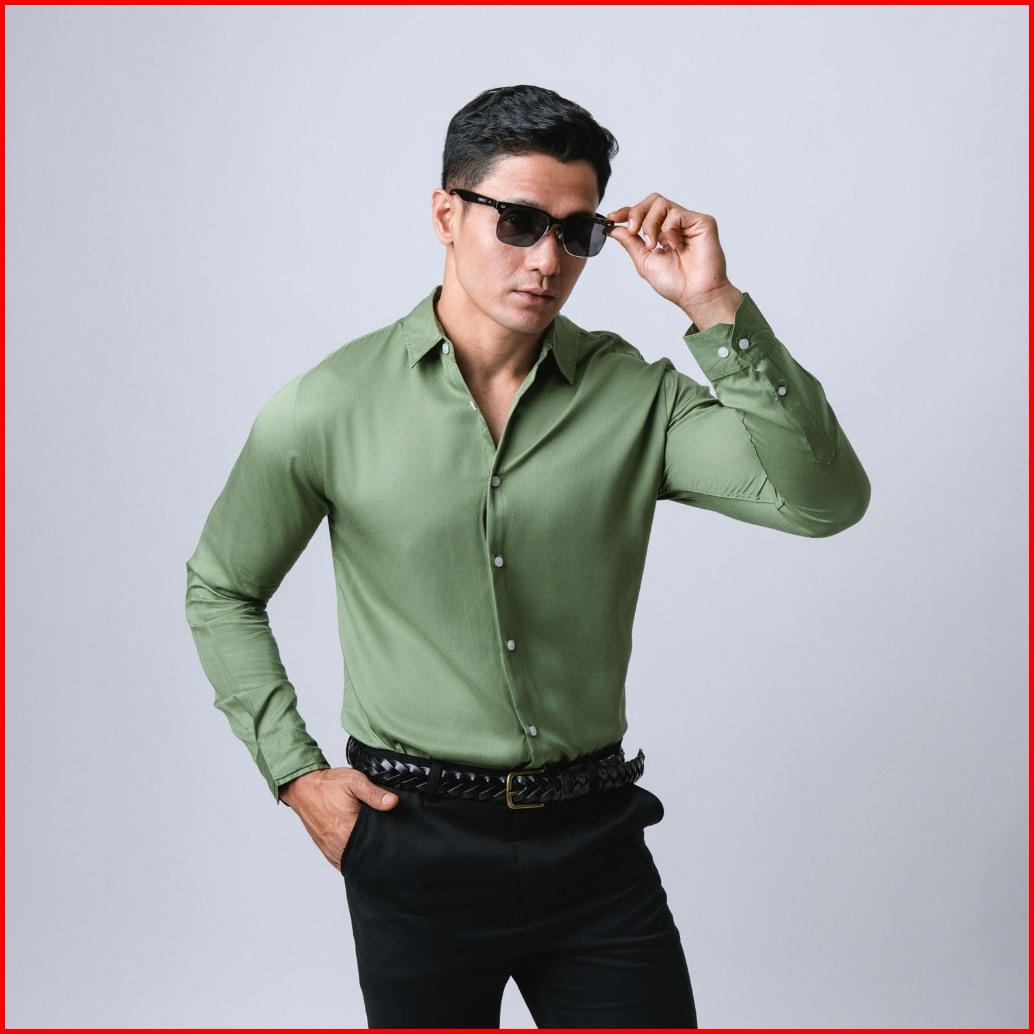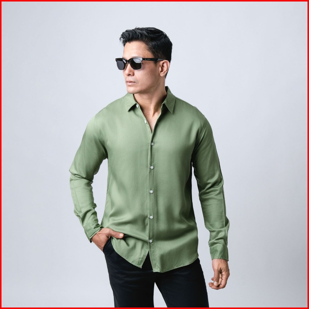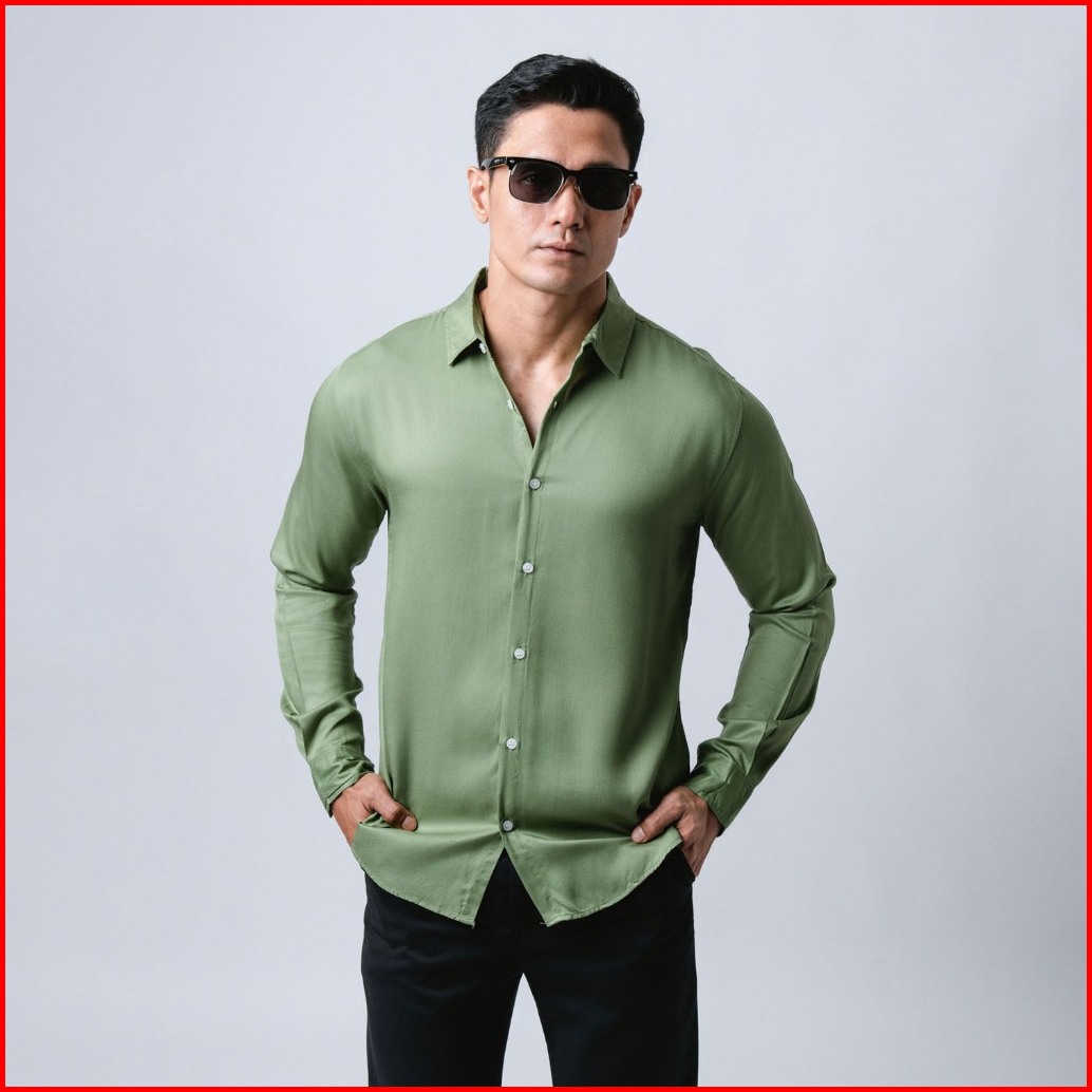 Vengoz Kemeja Pria Slimfit - Viscose Dark Sage Green Ls