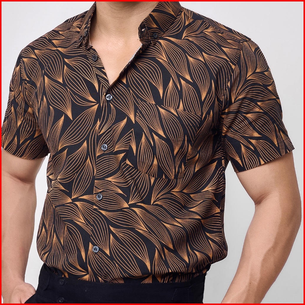 Vengoz Atasan Kemeja Pria Printing Slim Fit - Leaves Ss