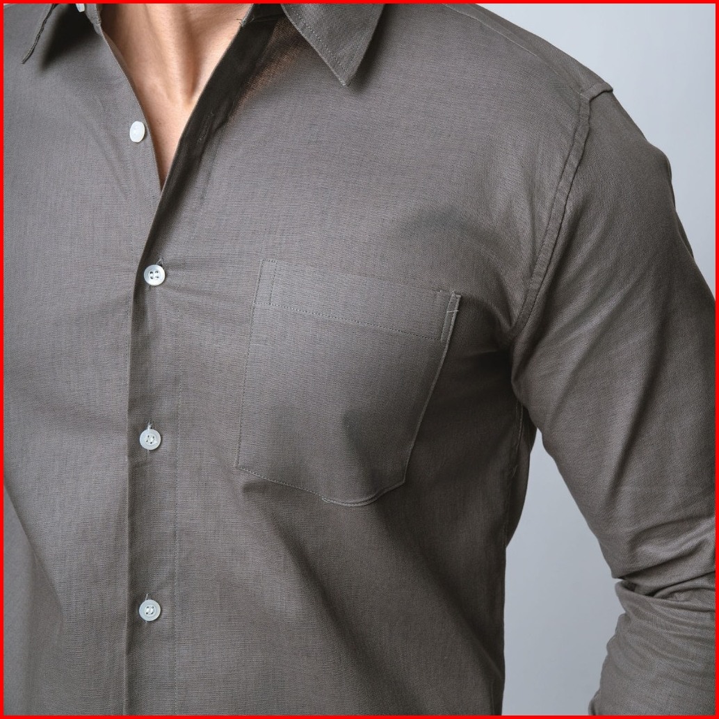 Vengoz Kemeja Pria Basic Rami Linen Look - Medium Grey Ls