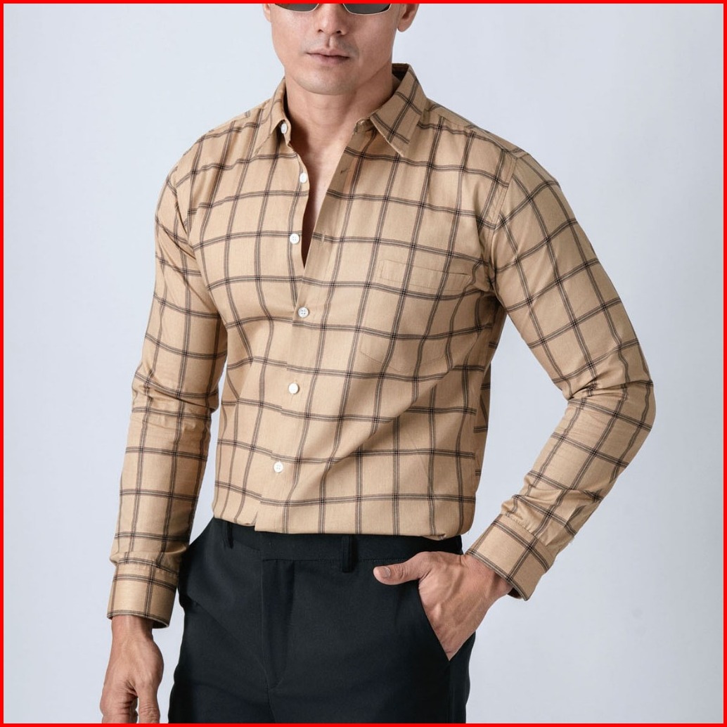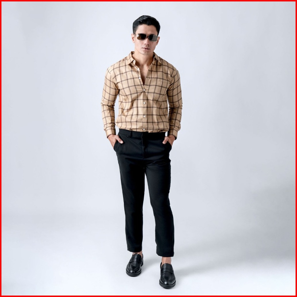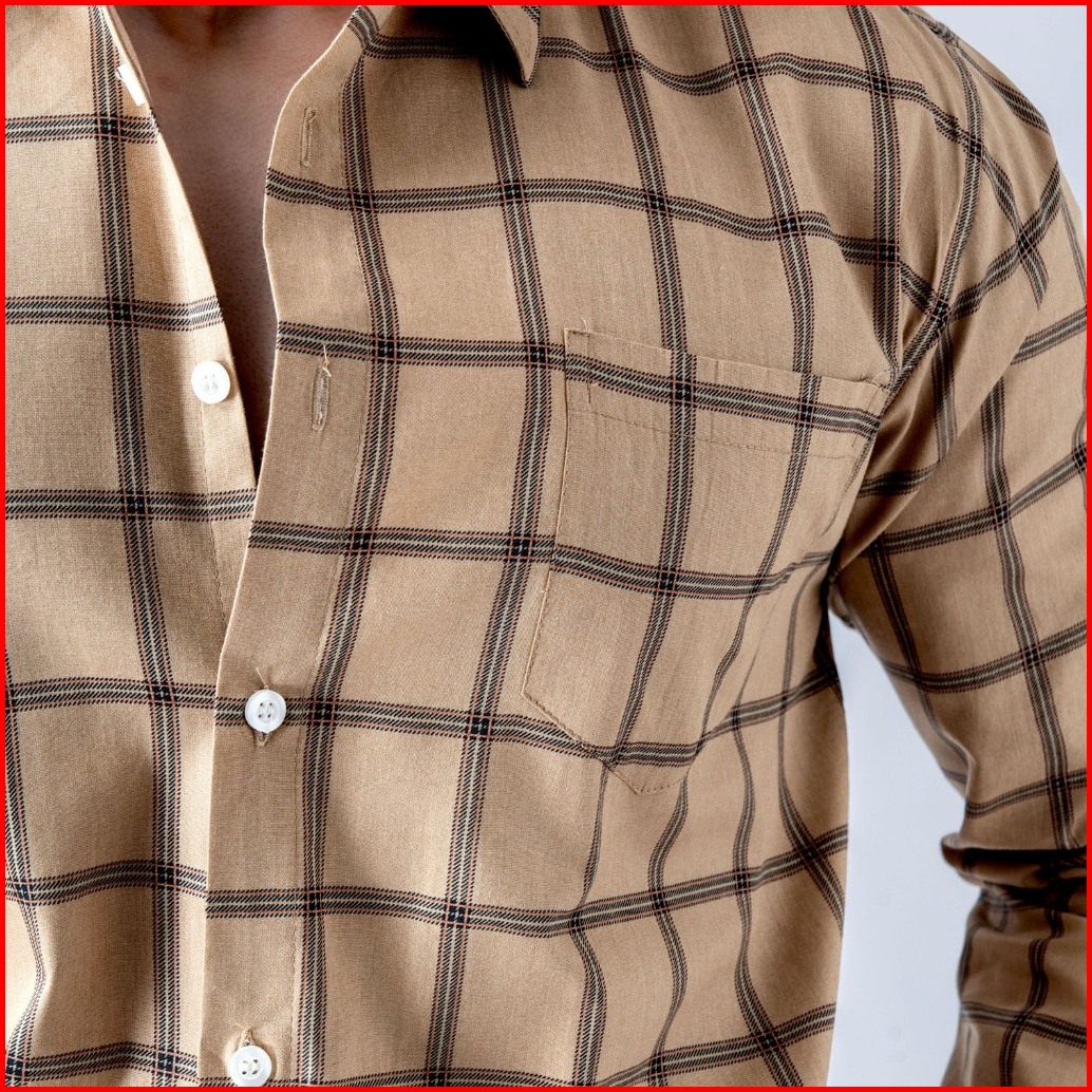 Vengoz Kemeja Pria Slim Fit - Roma Plaid Shirt Brown Ls