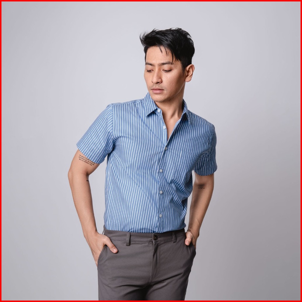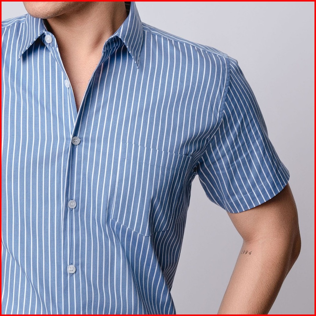 Vengoz Kemeja Pria Slim Fit - Hugo Stripe Shirt Blue Sky Ss