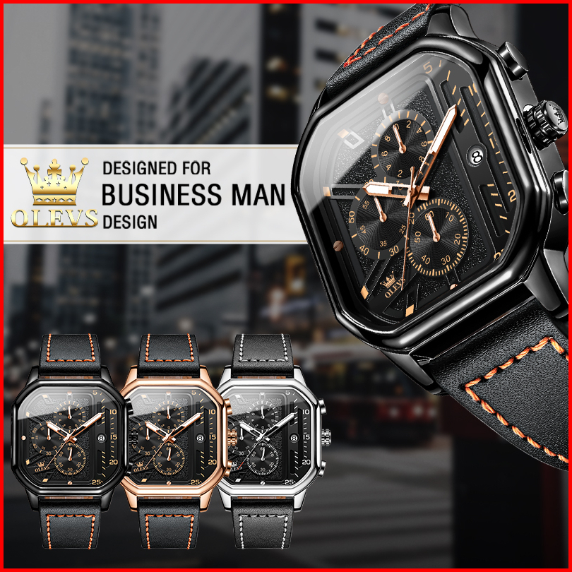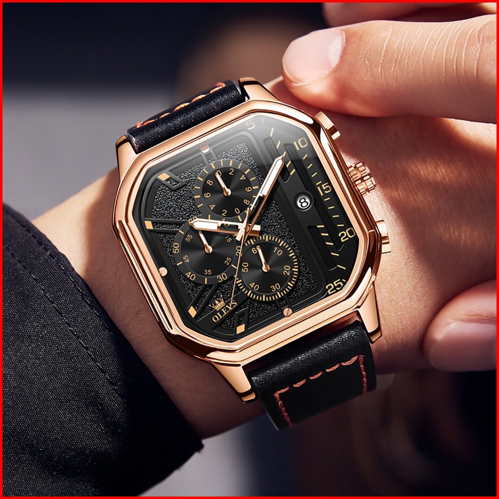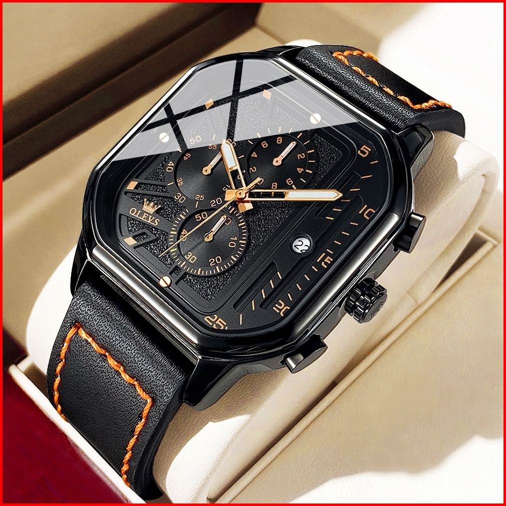 Olevs Jam Tangan Pria Original Anti Air Kulit Tahan Keren Led Hitam Coklat Luxury Chronograph Watch Men Multifungsi