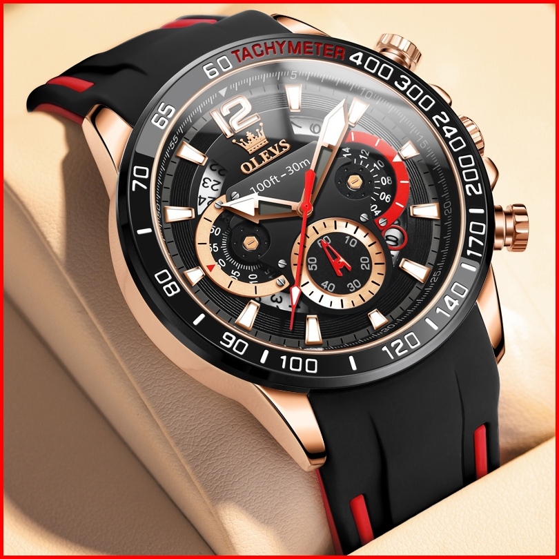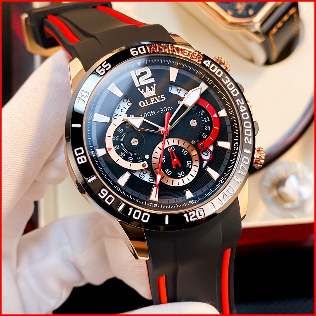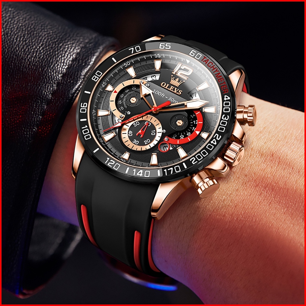 Olevs Jam Tangan Pria Anti Air Original Rantai Keren Mewah Luxury Chronograph Tali Silikon Multifungsi Watch Men