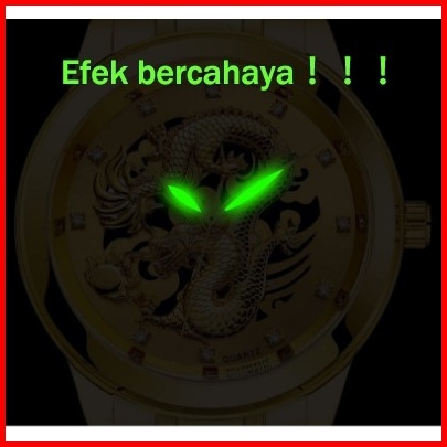 Holek Jam Tangan Pria Naga Luxury Stainless Steel Quartz Original Anti Air Dragon Watch Kuning
