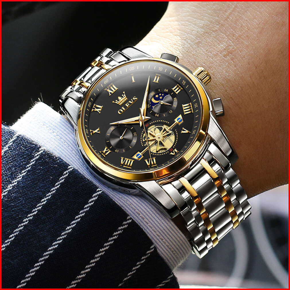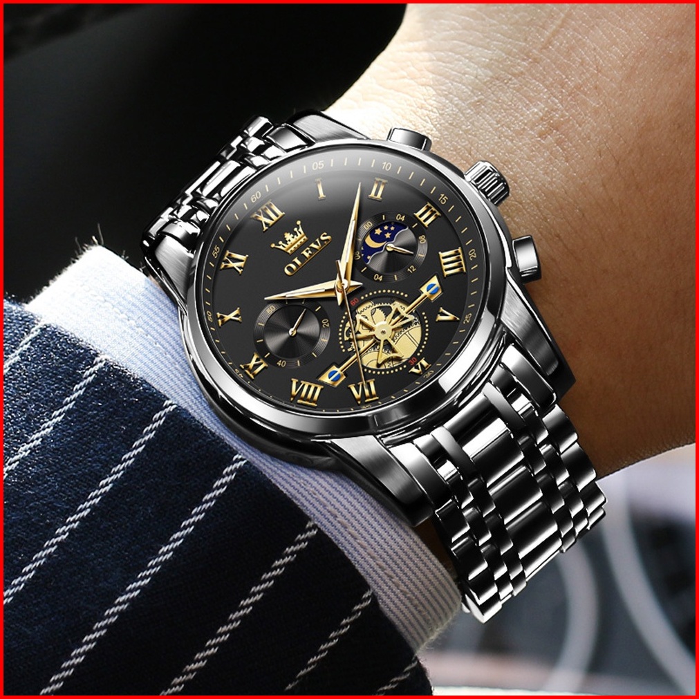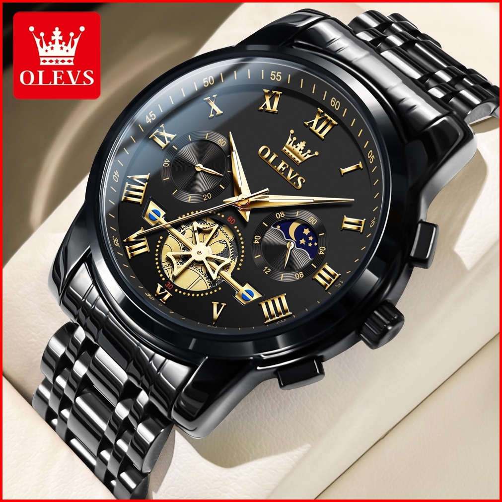 Olevs Jam Tangan Pria Anti Air Original Cowok Terbaru Tahan Luxury Led Sport Analog Chronograph Stainless Steel Watch Me