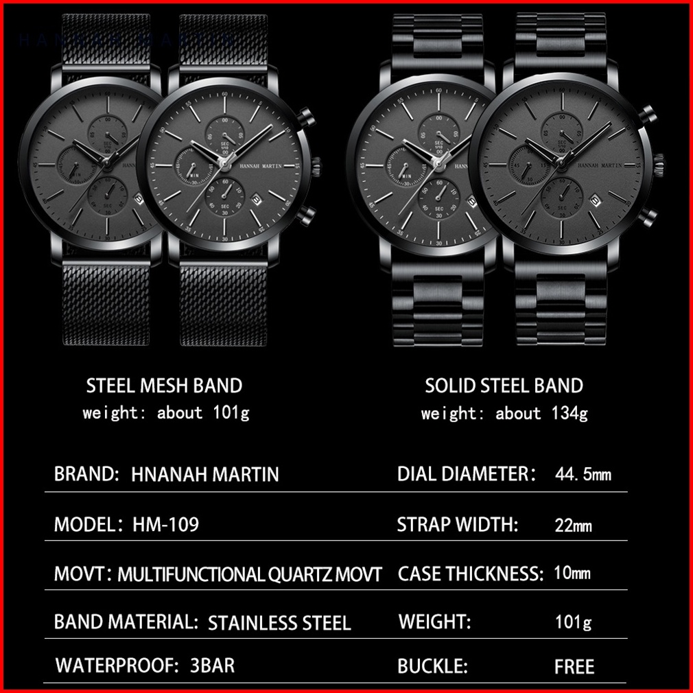 Hannah Martin Jam Tangan Pria 100 Original Kronograf Tahan Air Cowok Quartz Analog Laki 109g