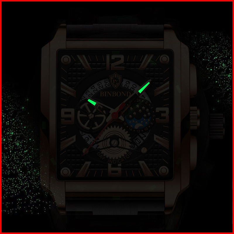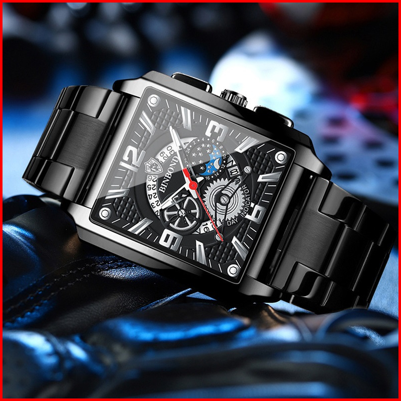 Binbond B6575 Jam Tangan Pria Original Anti Air Baja Tahan Karat Tahan Keren Led Square Chronograph Watch Men With Date